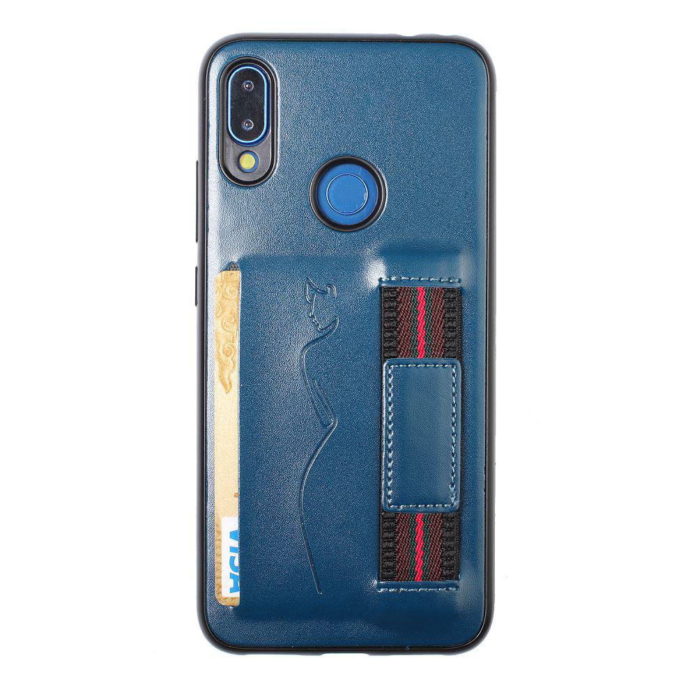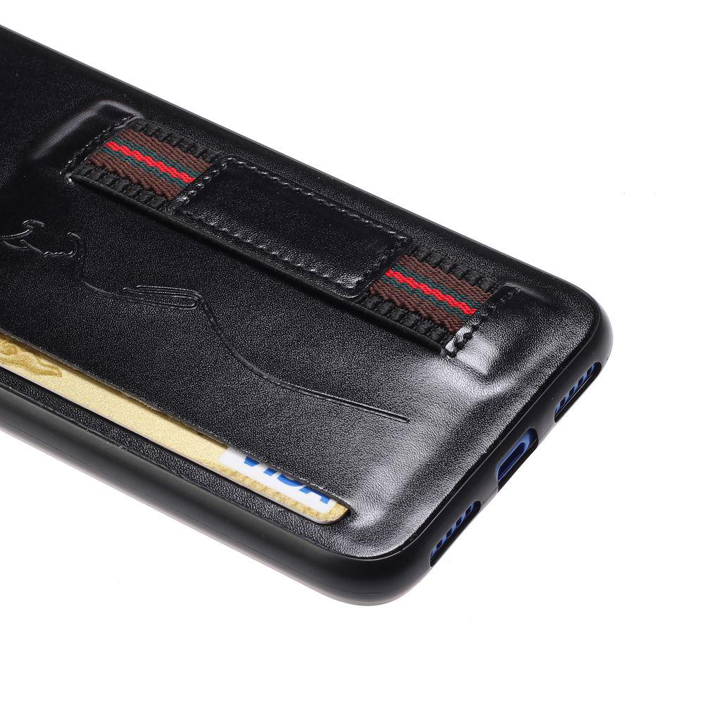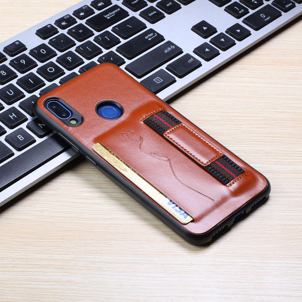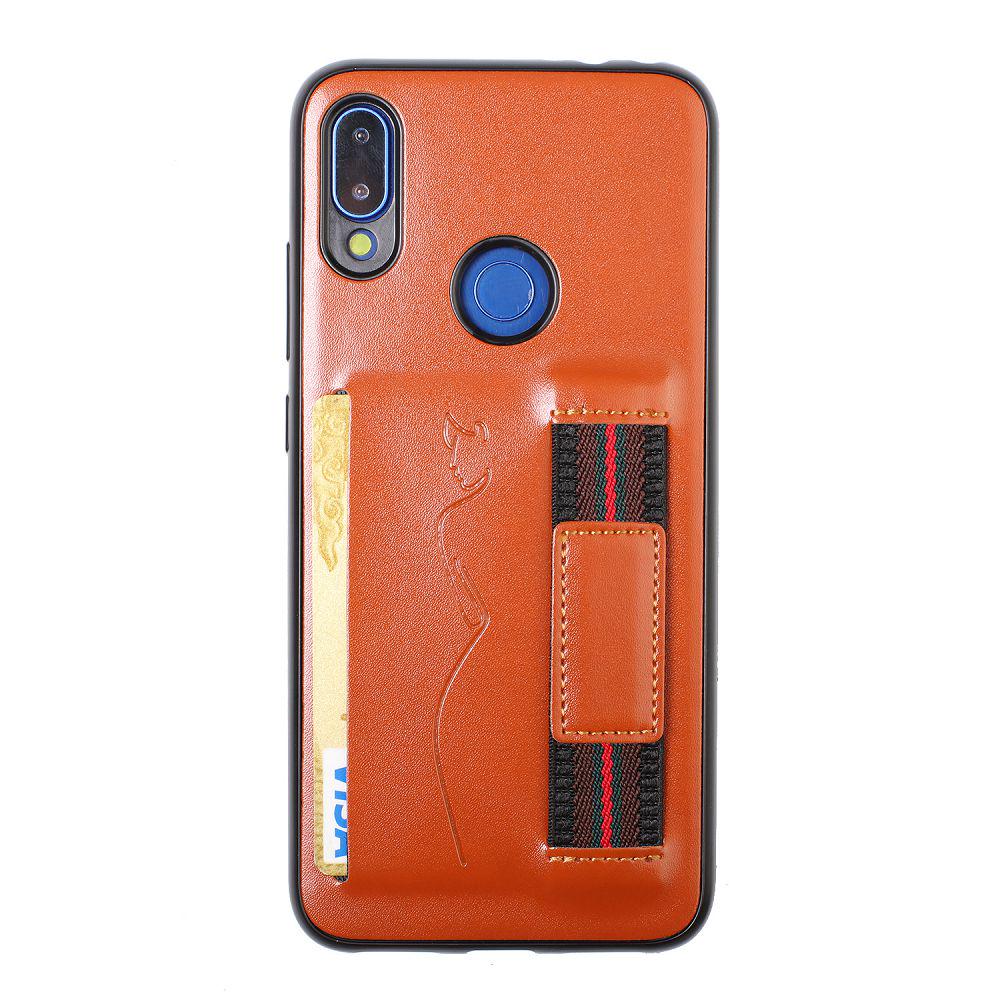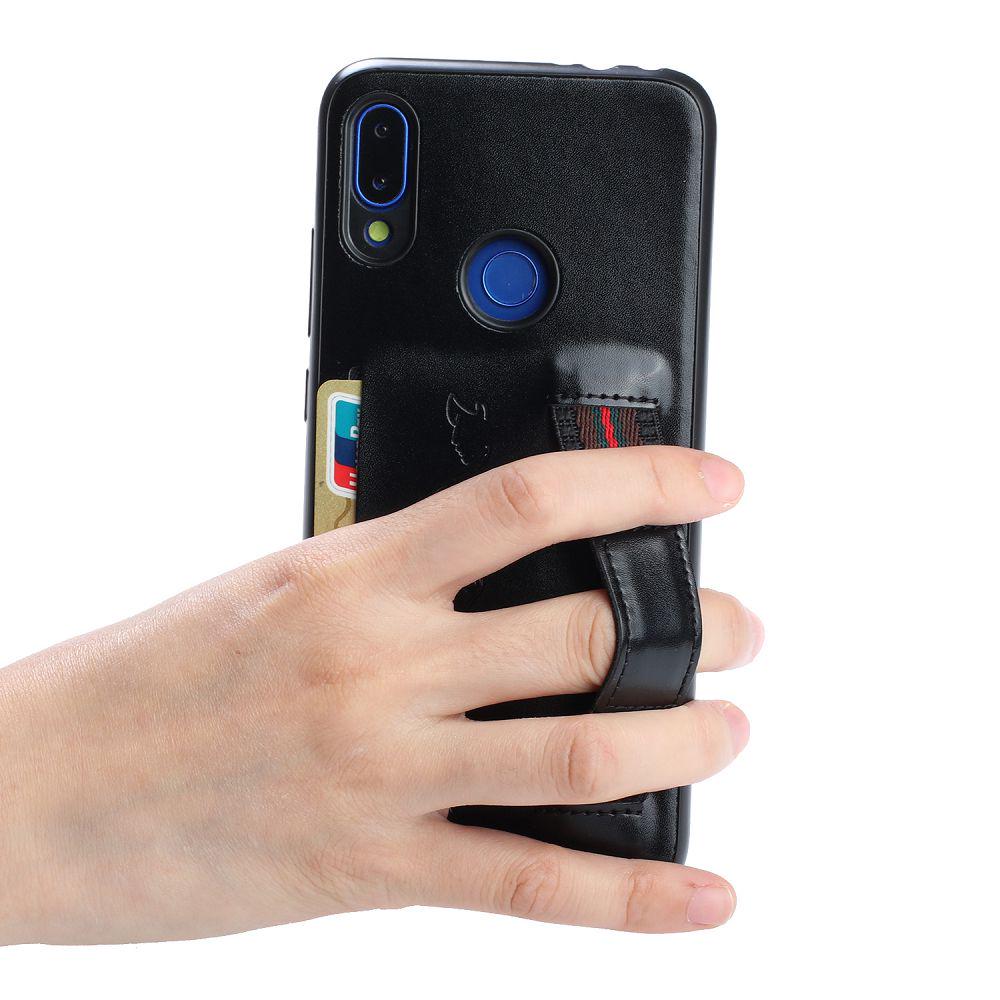 Back Card Slot Phone Case for Xiaomi Redmi Note 7, Leather Coated Soft TPU Phone Cover With Hand Strap