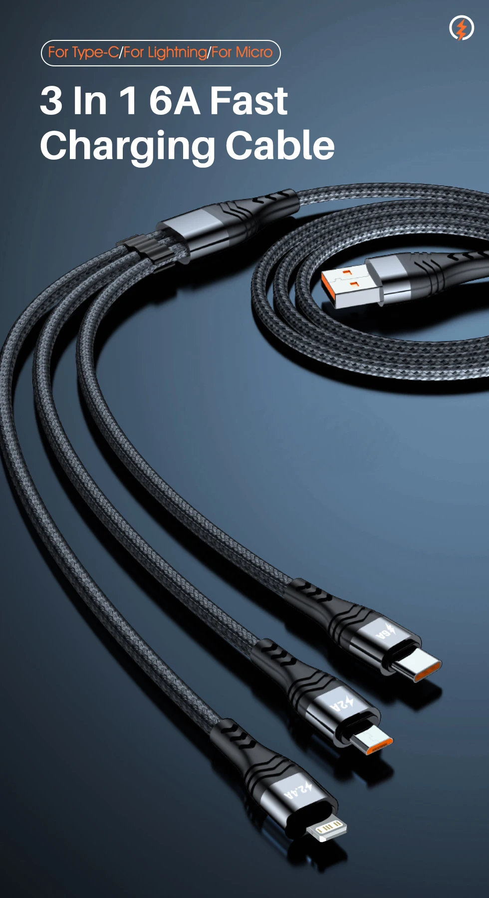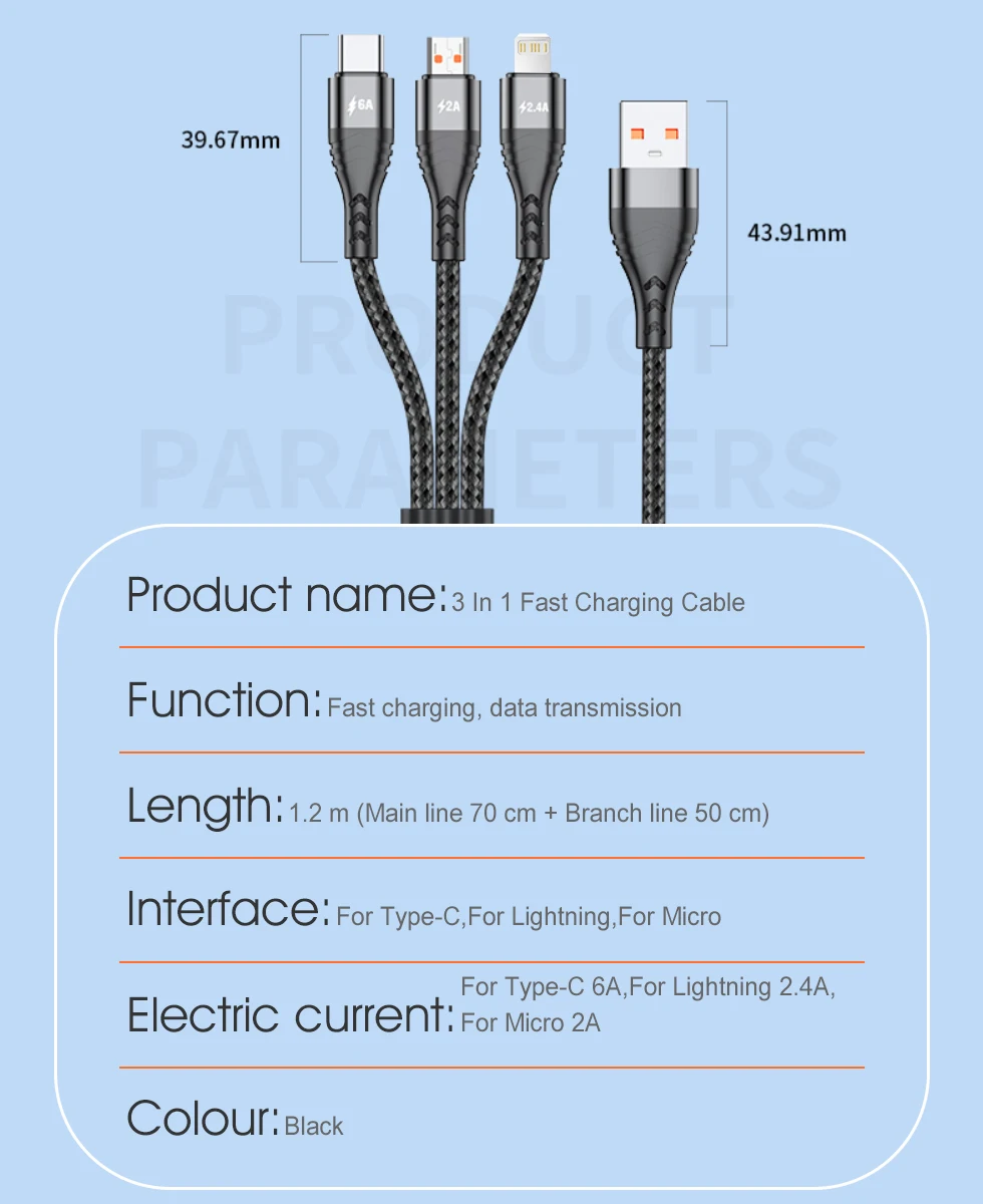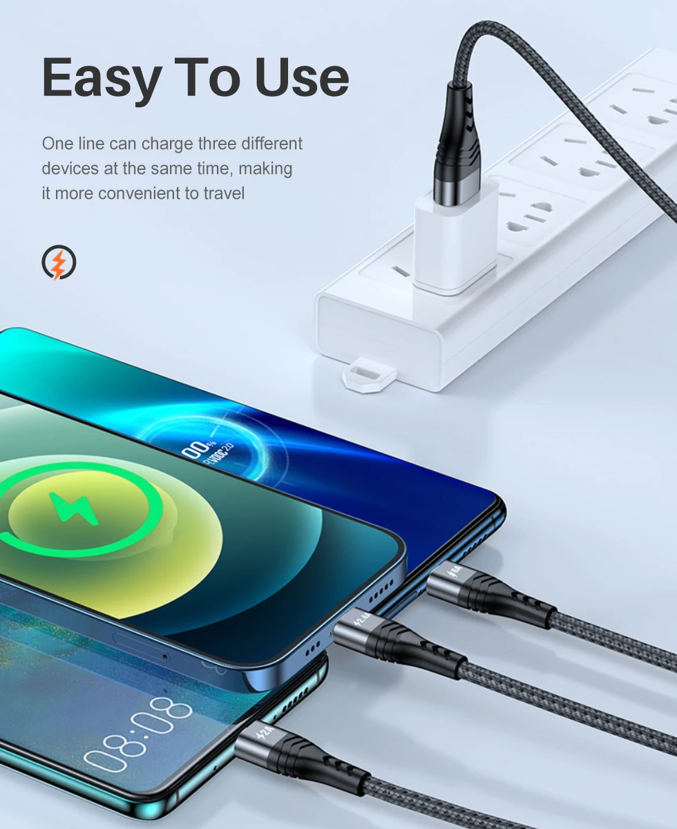 3 in 1 6A 66W SCP USB Cable for Huawei Mate 40 Pro Micro USB Type C 3 in 1 2 in 1 USB Charger Charging Cable for iPhone13 12 11