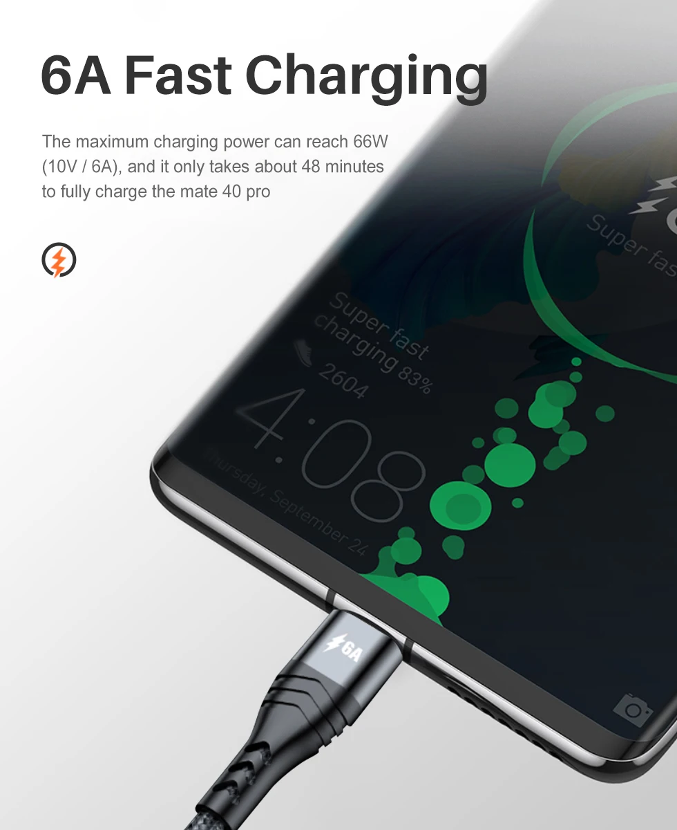 Only compatible with Huawei Mate 40 series 6A / 66W SCP super fast charging mode,