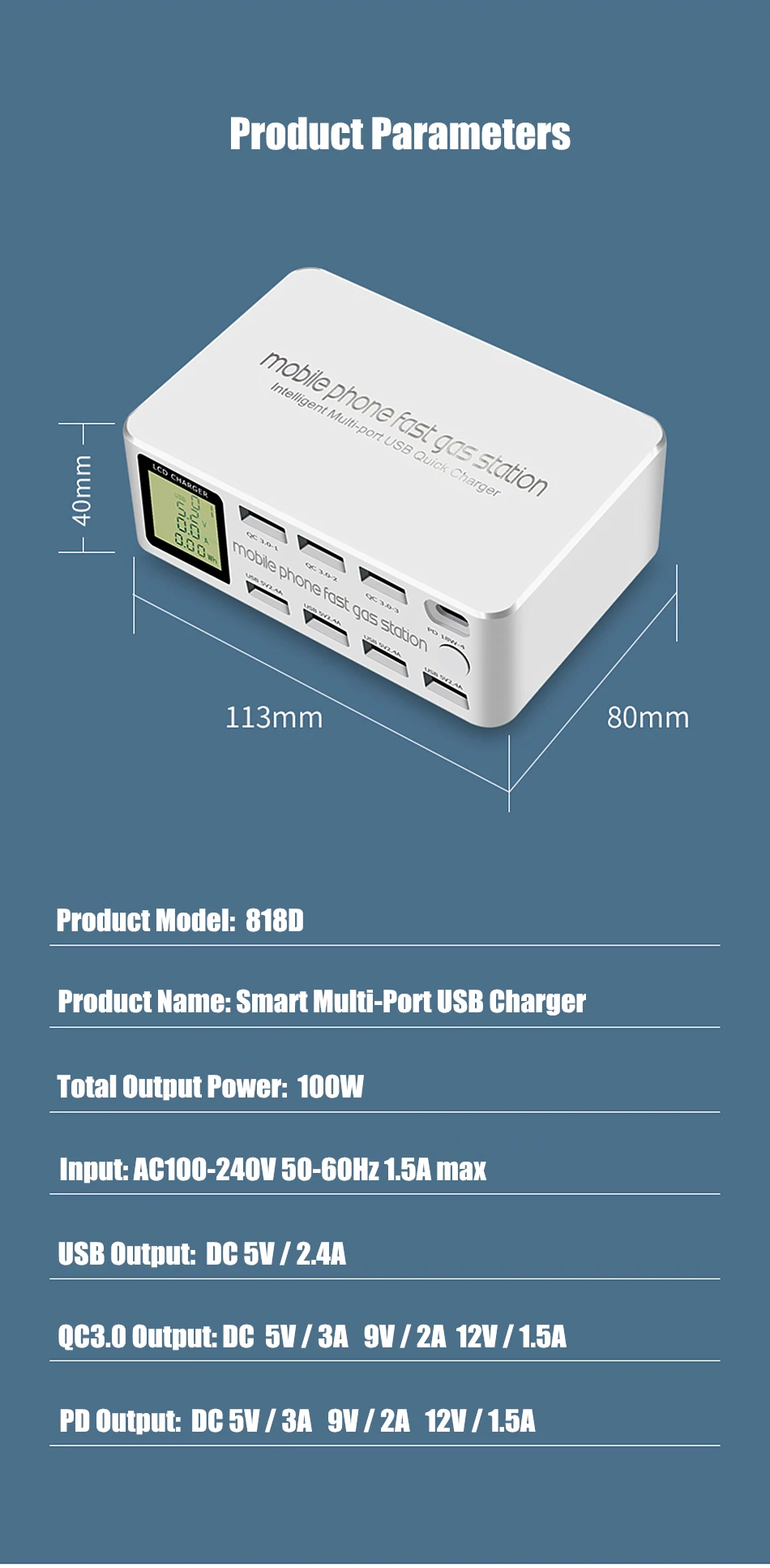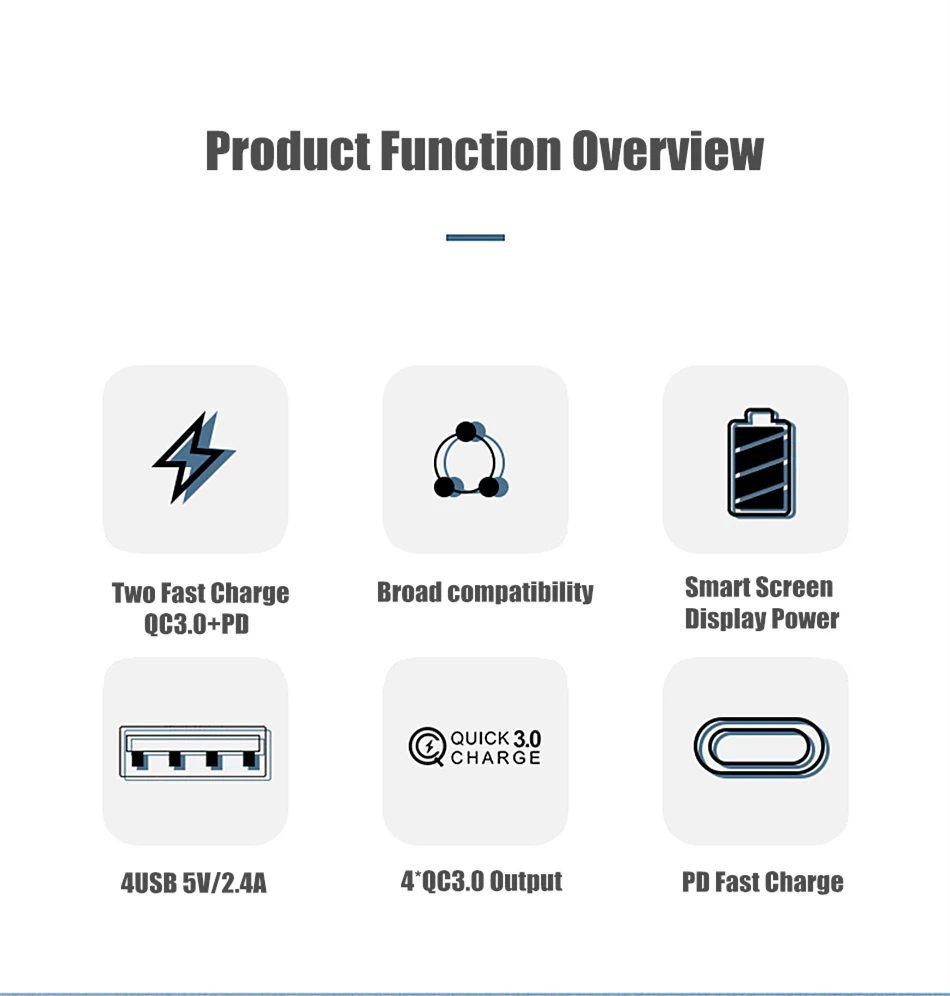 Single QC3.0 Output: 5V/3A 9V/2A 12V/1.5A