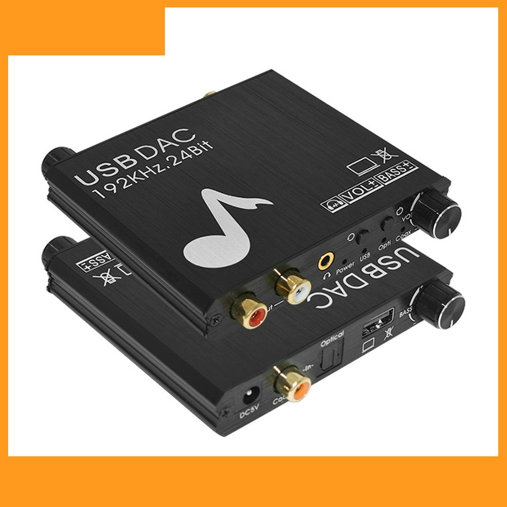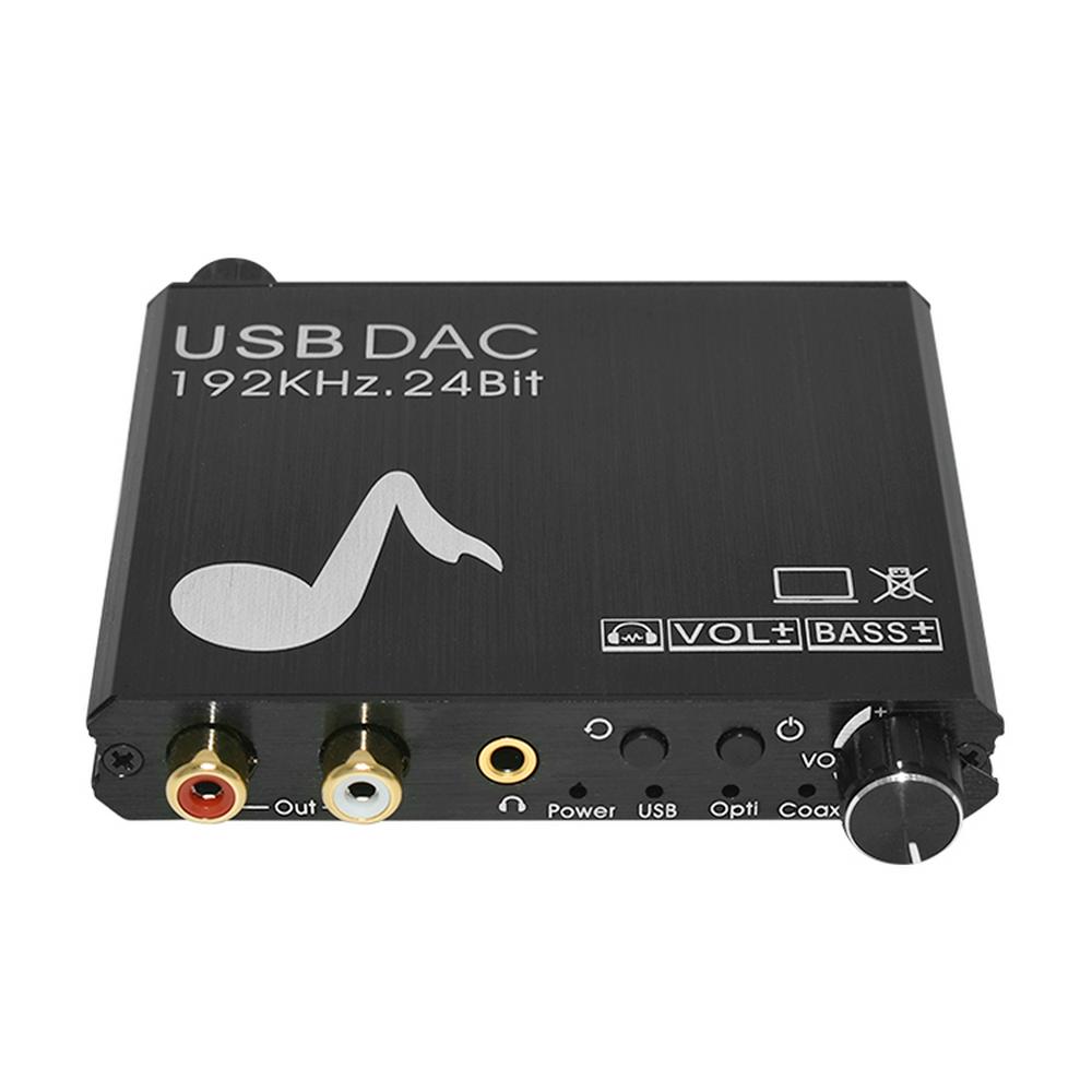 1. Connect CD/DVD and other playback devices to the optical or coaxial interface with optical cable or coaxial cable. Connect Laptop to USB interface with USB Cable. NOTE:Don't connect USB flash disk to this USB Port. 2. Use the RCA cable or 3.5mm audio cable to connect the decoder to the audio amplifier or headphones. 3. Use the USB cable to connect the DC 5V power connector of the decoder to the power supply. 4. Use the knob to adjust the volume appropriately. 5. According to your preferences, adjust the bass component appropriately through the knob.