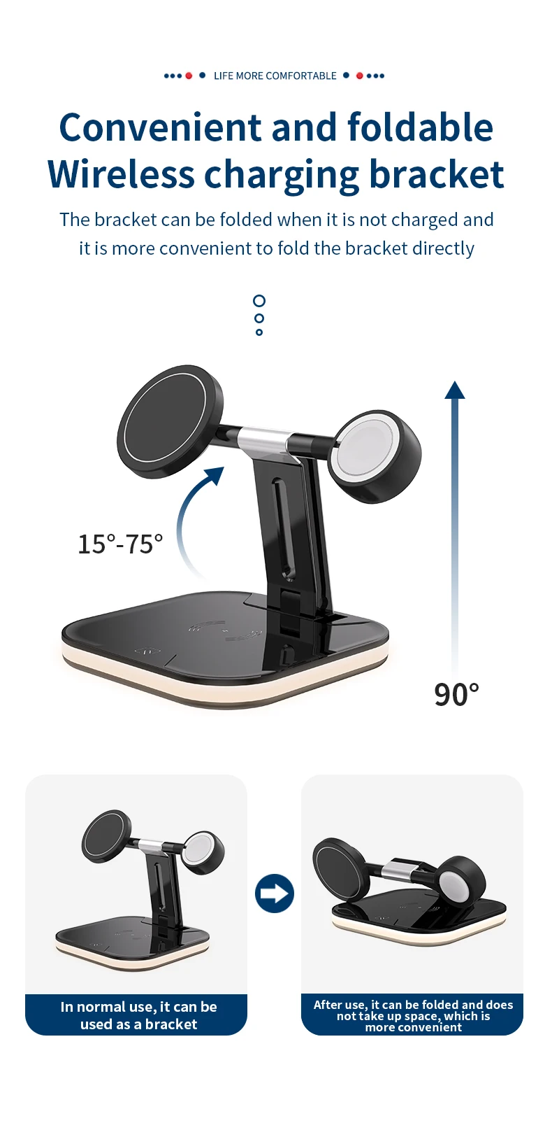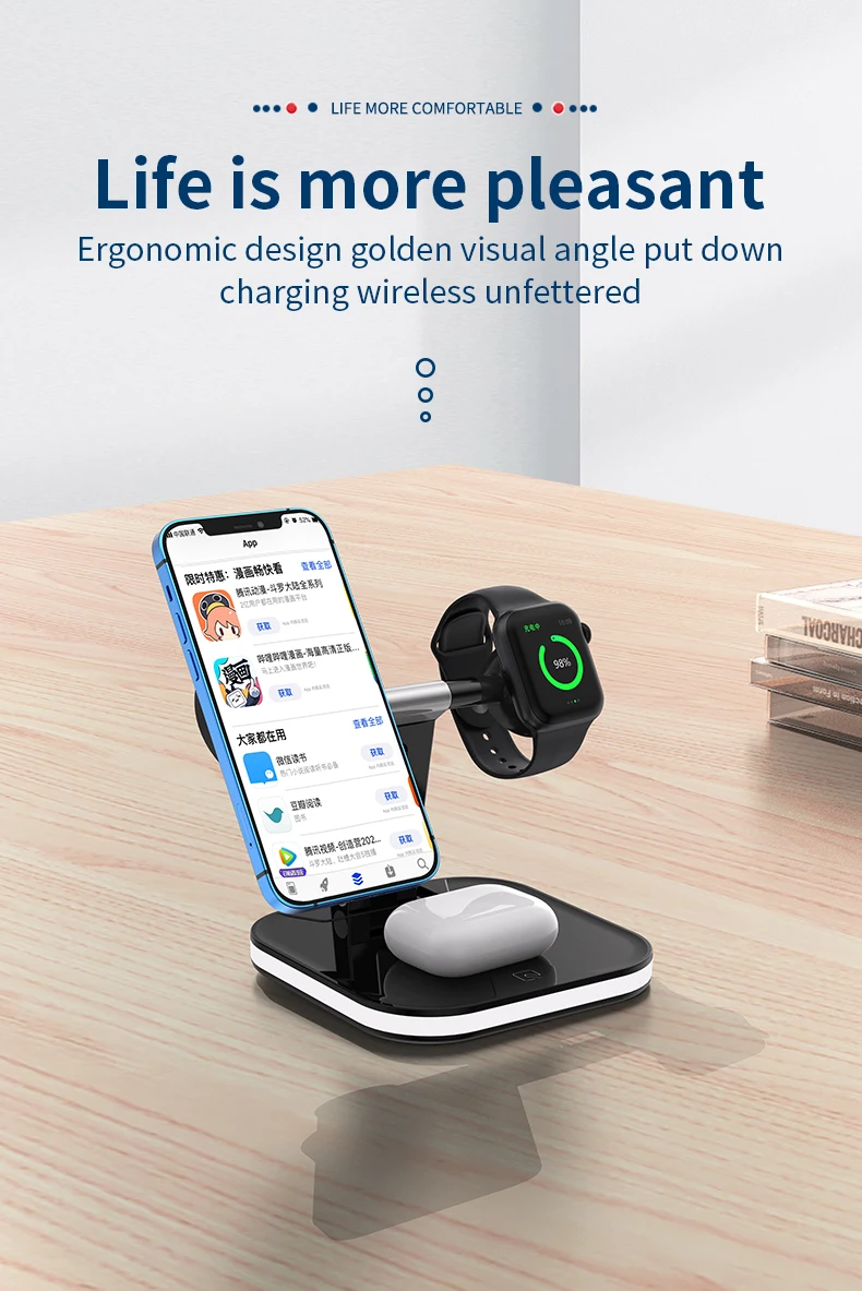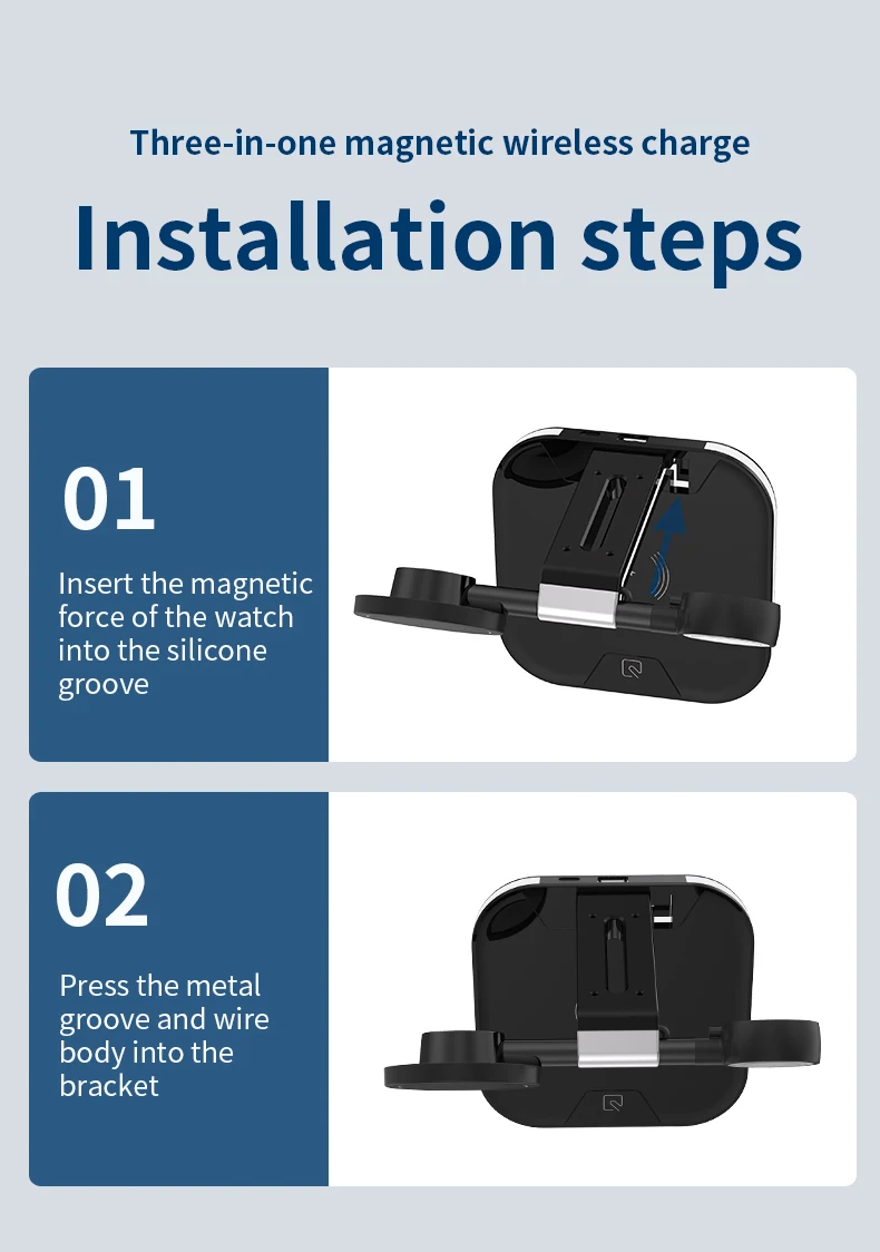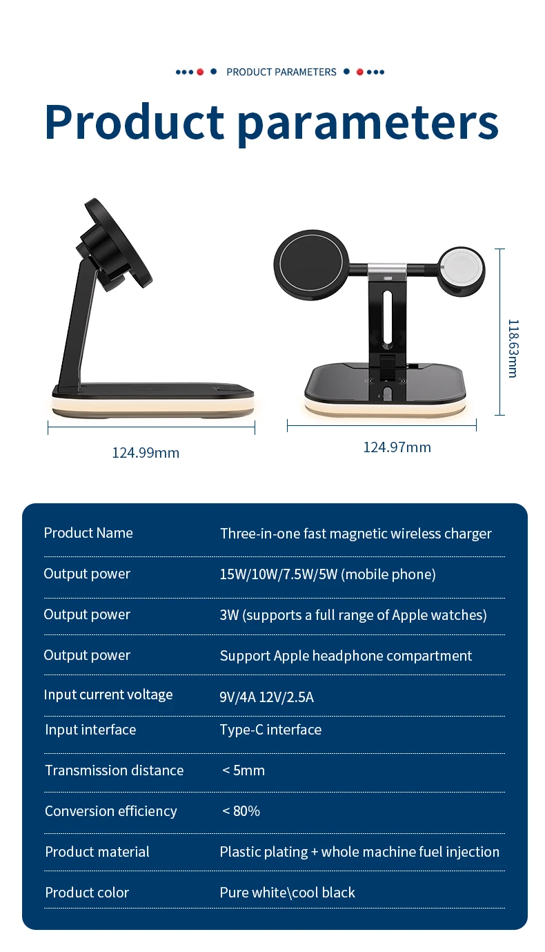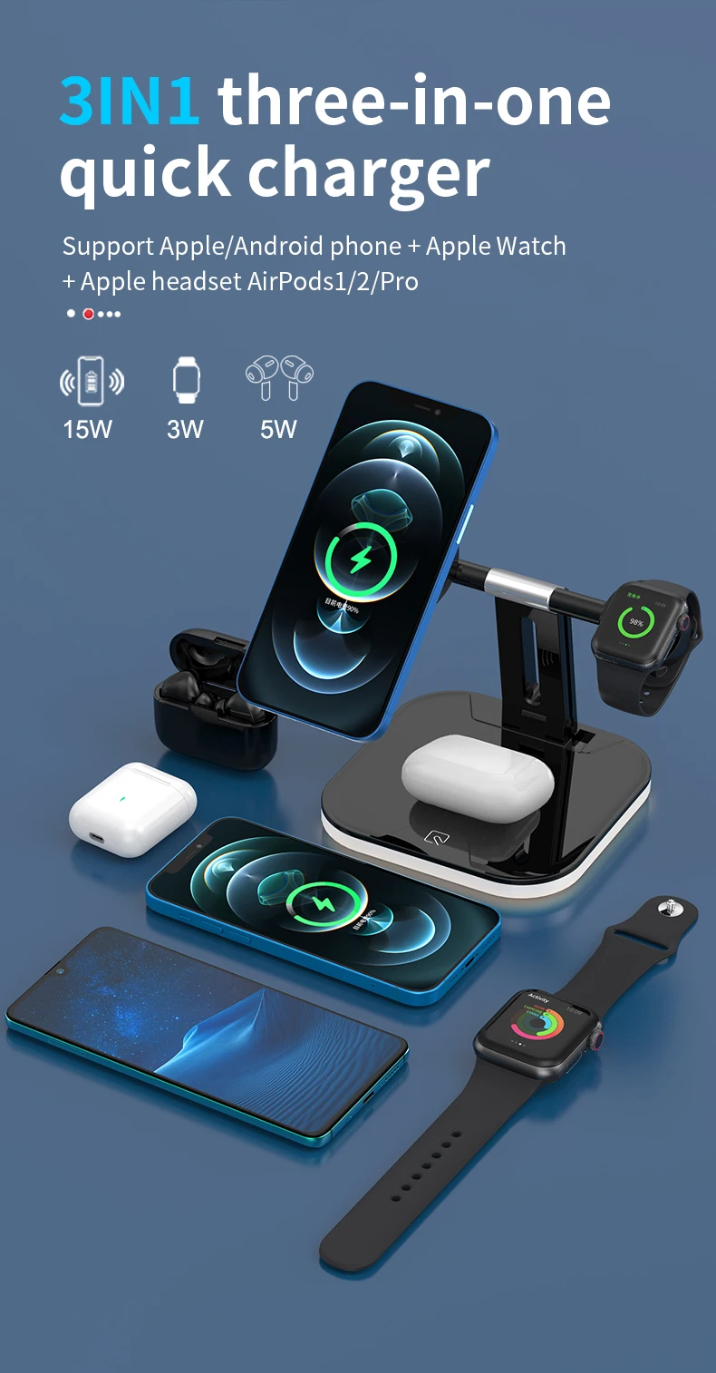 Package Include 3 in 1 Wireless Charger *1 USB C-Cable *1 Watch Charger *1 Manual*1