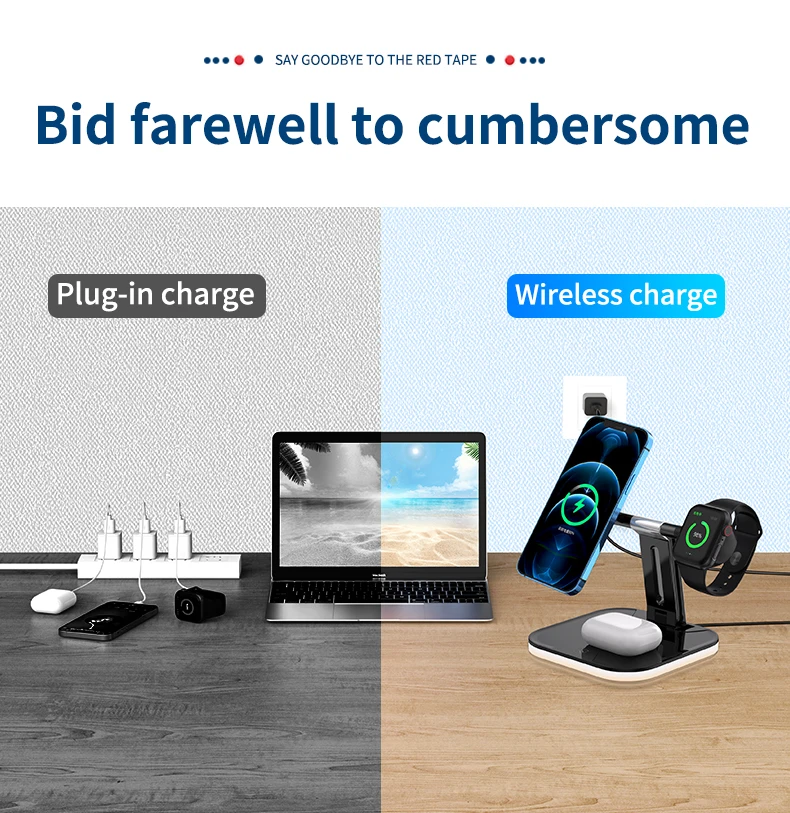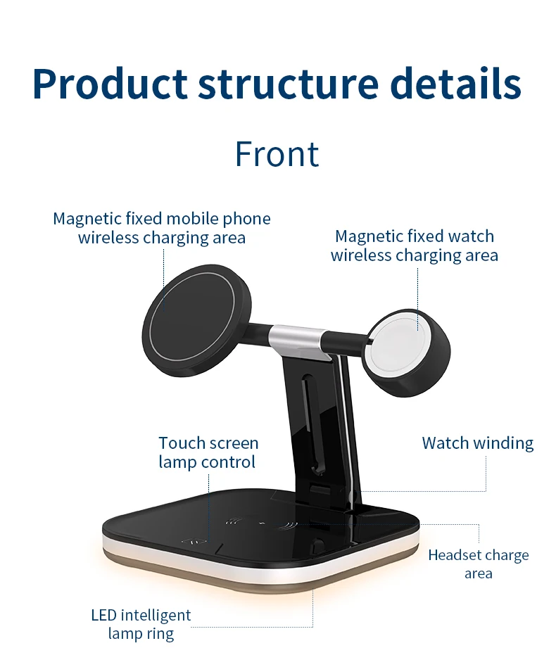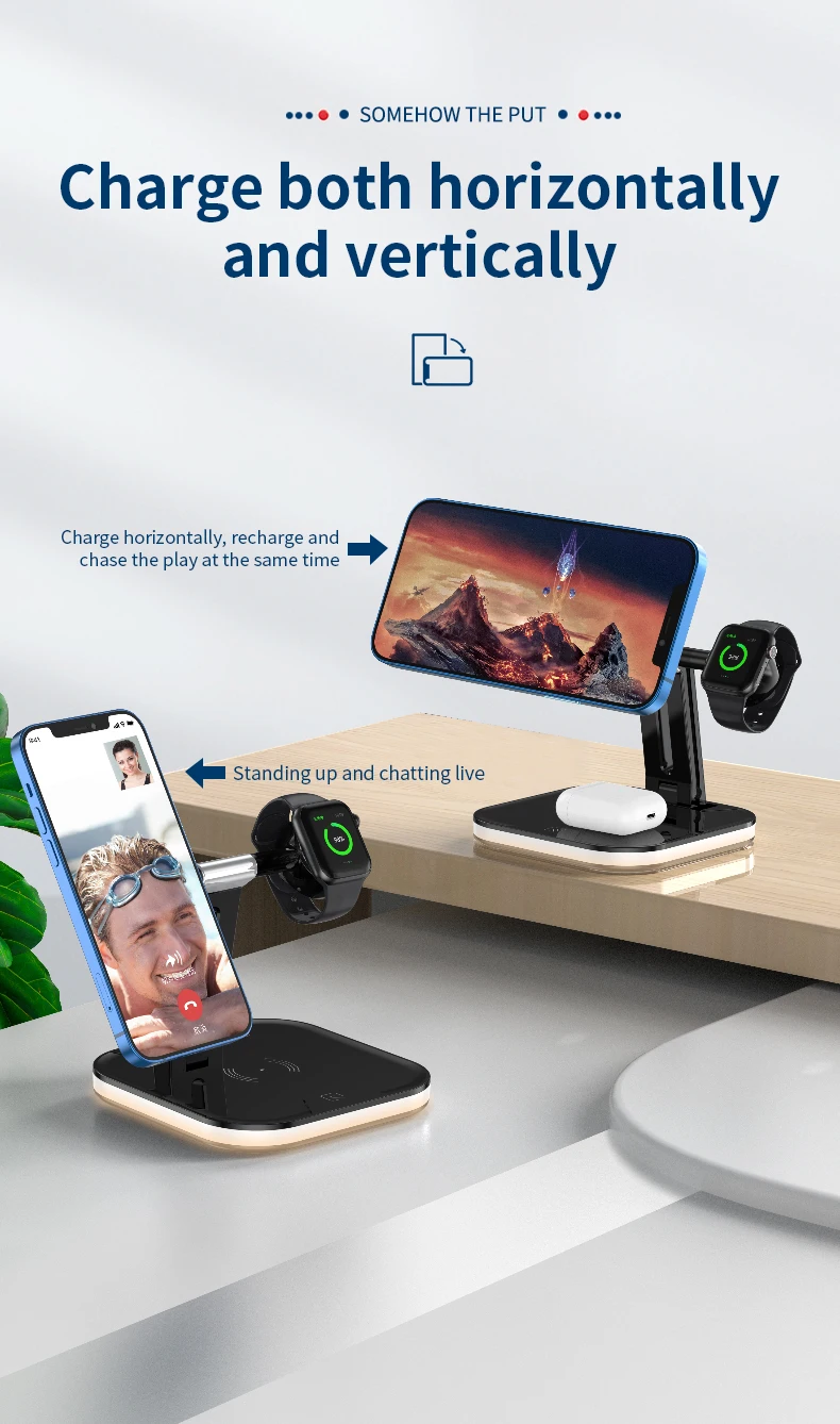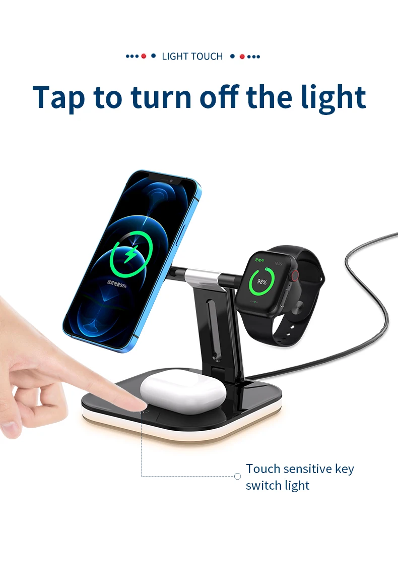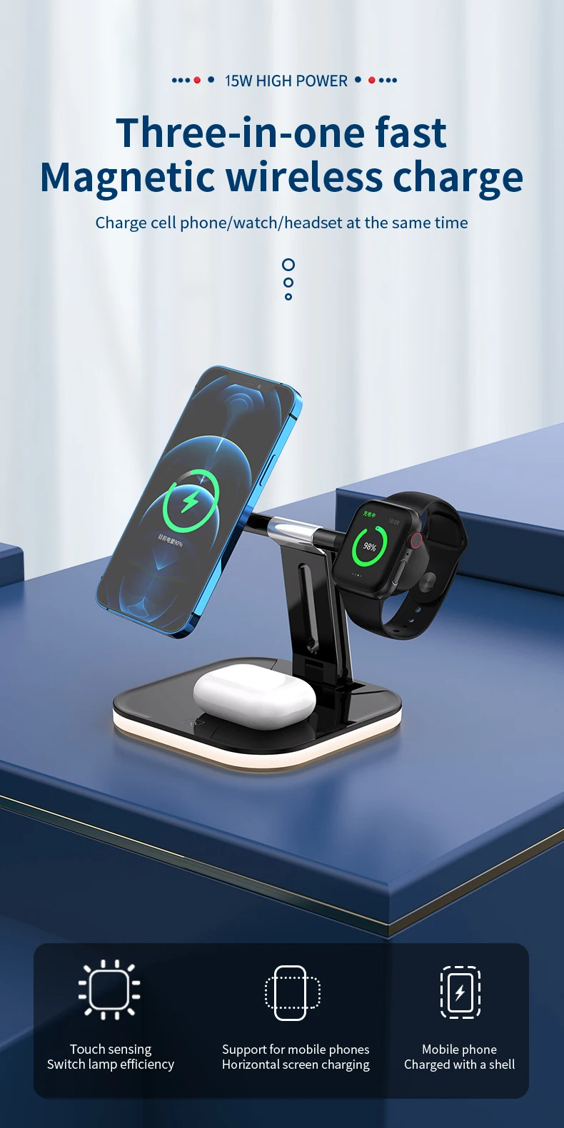 QC3.0 Adapter, 1 x Manual. We take responsibility for our products. Click on the “Add to cart” button now and get this cool accessories for your iphone products. 【15W Fast Wireless Charging Station】The wireless charger car mount designed with Overcurrent/Overheat/Over-Voltage Protection, Short Circuit Safeguards. It can intelligently identify wireless fast charging device and smartly adjust power among 5W, 7.5W, 10W, 15W. 【Be your Night light】There is a light under the charging base, and the light will automatically turn on when charging (it can also turn on without charging). Of course, you can turn off or self-adjust it if you don't need it. There are two gears to choose from.This feature can help you see more clearly at night or act as your bedside lamp. 【Strong Magnet】Custom designed for iPhone 12/12 Mini/ 12 Pro/12 Pro Max. Built-in strong magnets and anti-slip silicone produce stable hold for mobile phone. It supports mobile phone vertical or horizontal charging for better viewing of video. At the same time, the closed magnetic field would not affect the phone signal. NOTE:Qi-Enabled Phones can use the magnet case, but the charging effect is not guaranteed. 【3-in-1, Save Space】Adopting the wireless technology, this wireless charging station supports to charging your IPhone 12/12 Mini/12 Pro/12 Pro Max, iWatch Series 6/5/4/3/2/1, AirPods Pro/2 simultaneously. Hide the redundant cables, and make your desk or nightstand neatly and orginazed. NOTE: NOT support other smart watch.