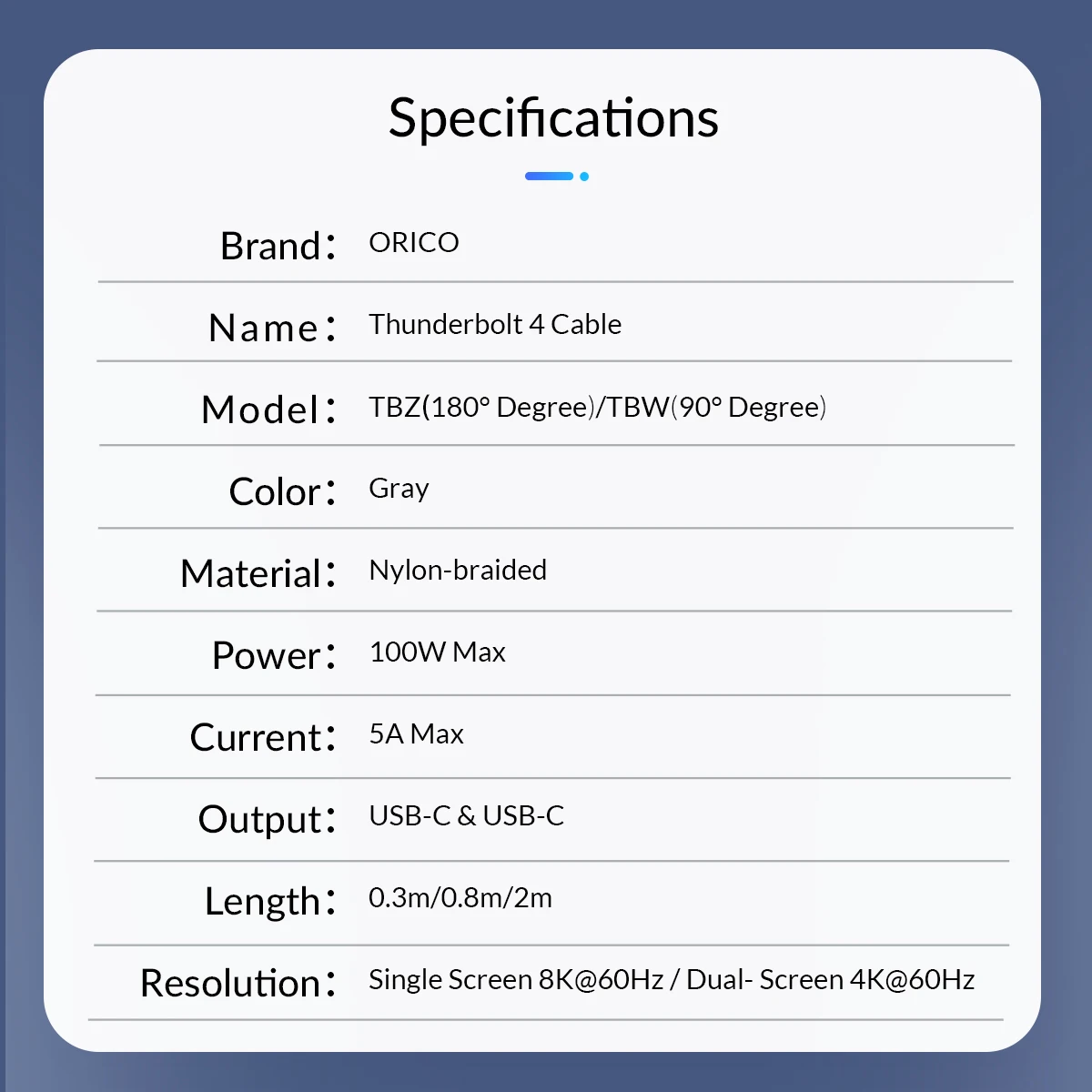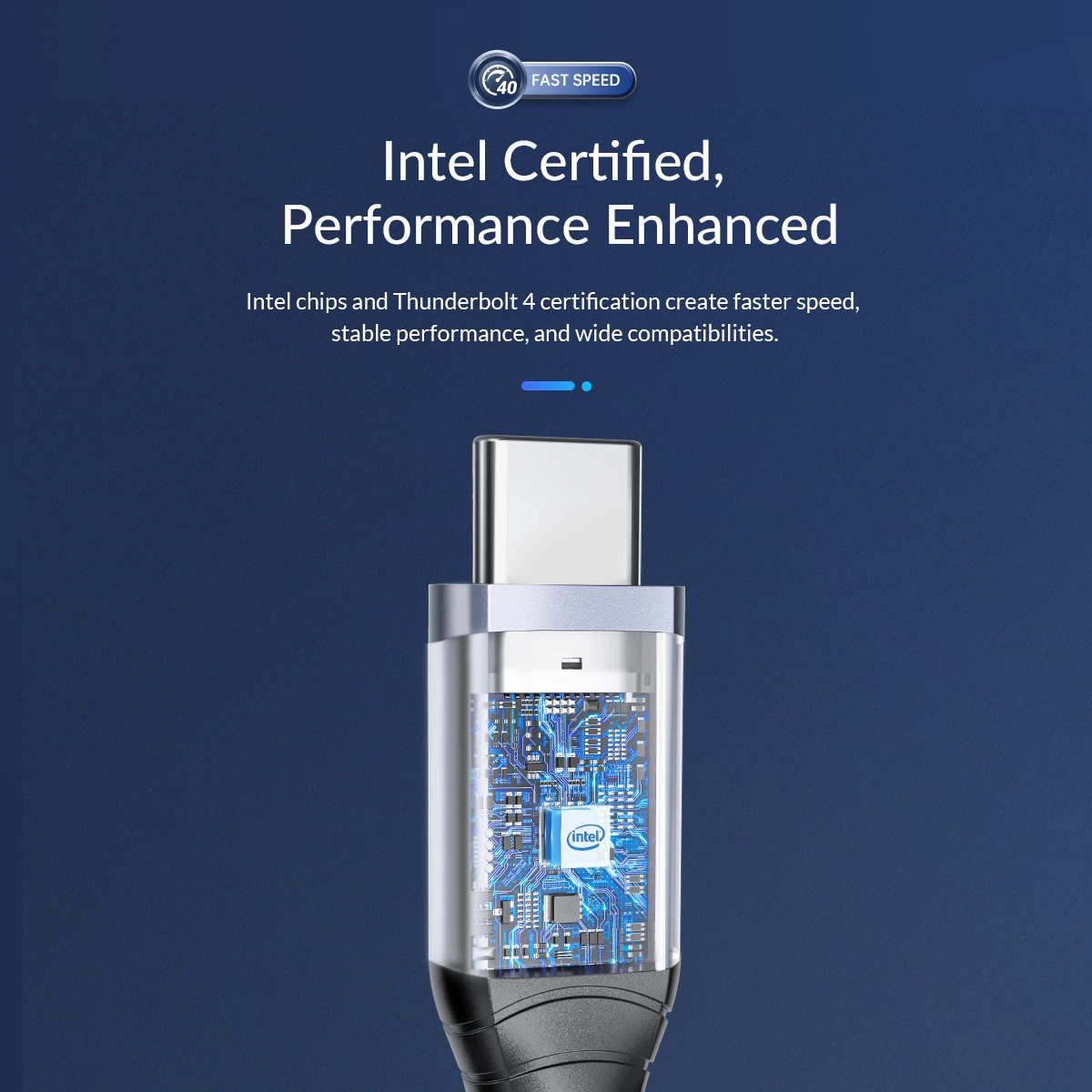 Thunderbolt 4 Cable with power delivery up to 100W, which is very suitable for usb-c devices (such as Thunderbolt 4, thunderbolt 3, USB4, usb3), and can provide power transmission for laptops or mobile phones.(Note: Charging speed may be dependent on the host device's charging capability)