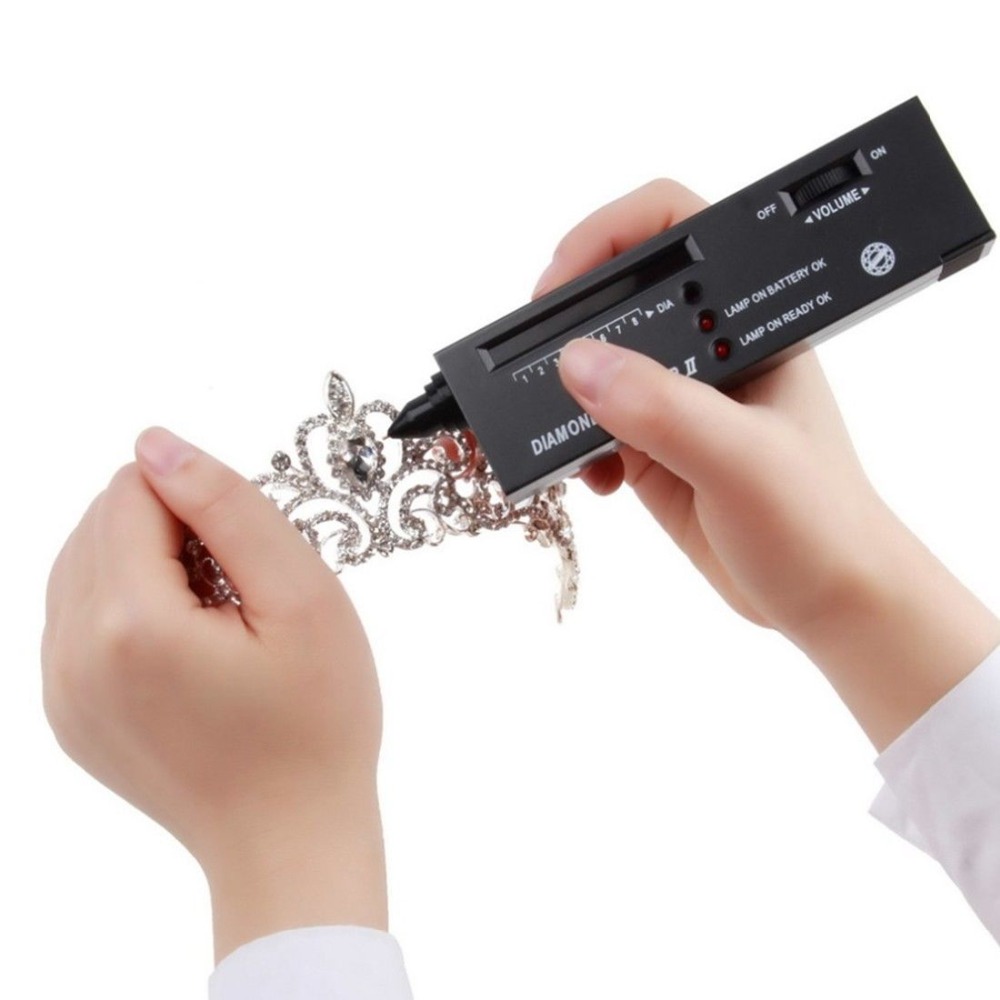 5. Carefully watching the instrument, if the rest of the emitting diode light reflect yellow, when light place moves to nine diodes with accompany beeping, this explains those tested are for real diamonds. On the contrary, if light place moves to insufficient nine diodes, and without accompany beeping, this explains fake diamond or counterfeit.
