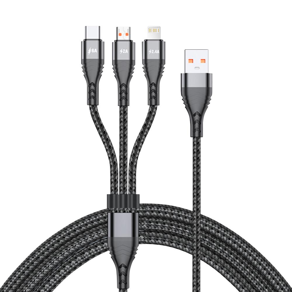 3 in 1 6A 66W SCP USB Cable for Huawei Mate 40 Pro Micro USB Type C 3 in 1 2 in 1 USB Charger Charging Cable for iPhone13 12 11
