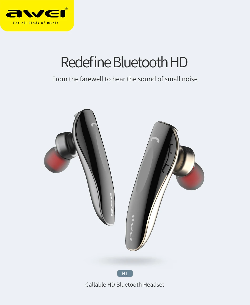 AWEI N1 Unilateral Bluetooth Headset for driving Stereo mini true Wireless Earphones with mic Handfree earbuds noise cancelling