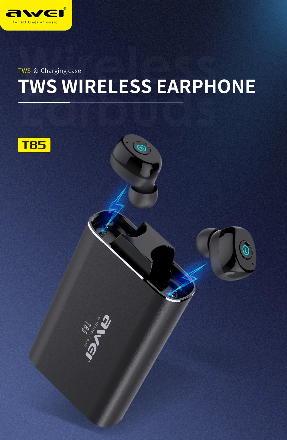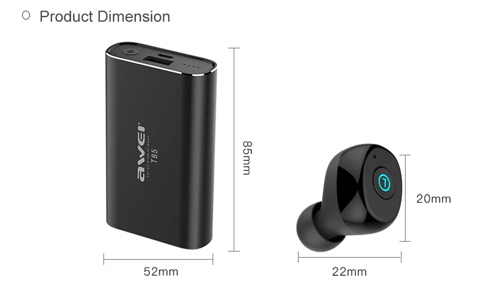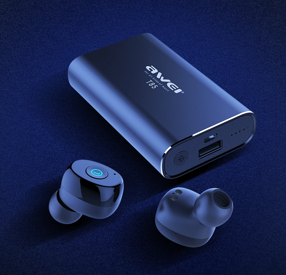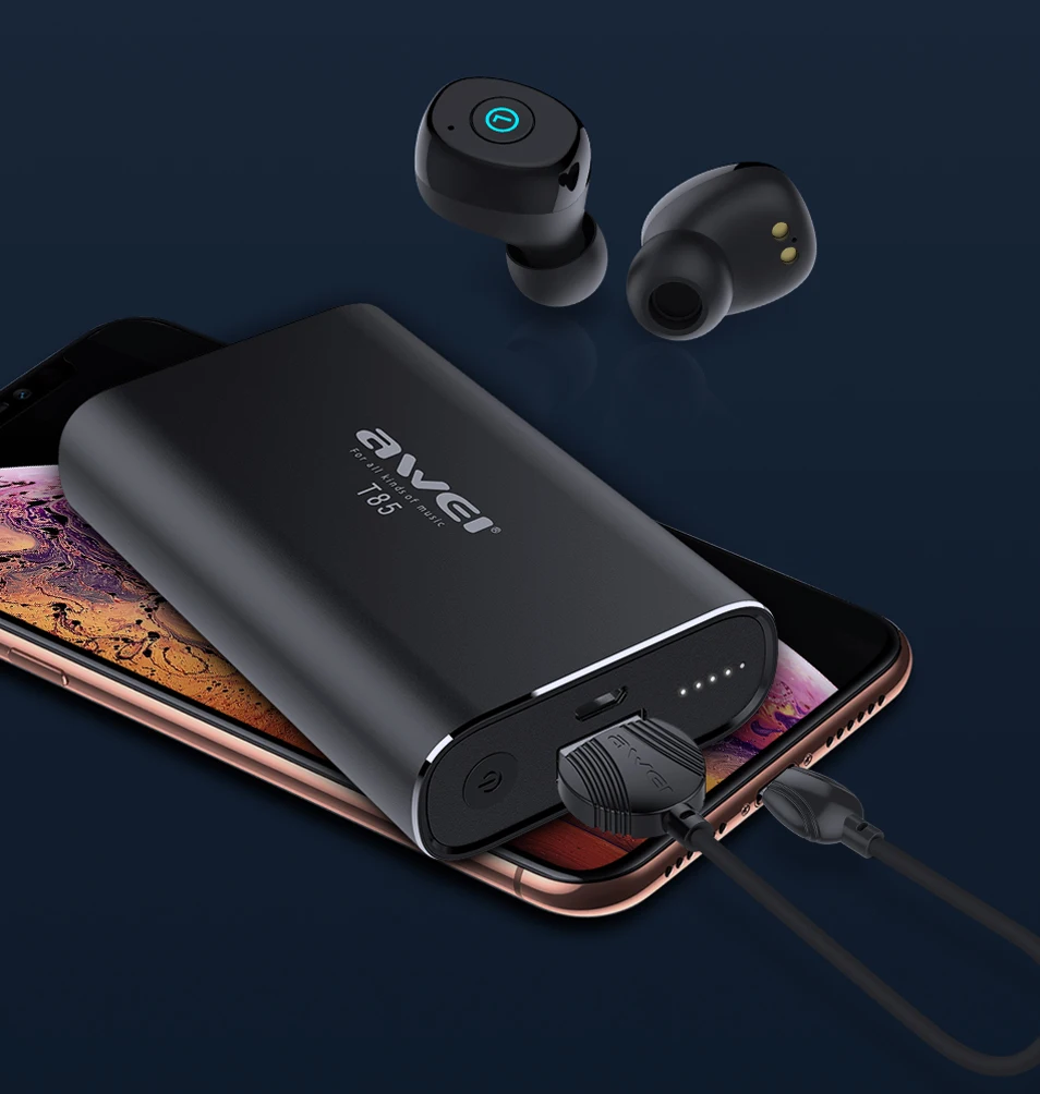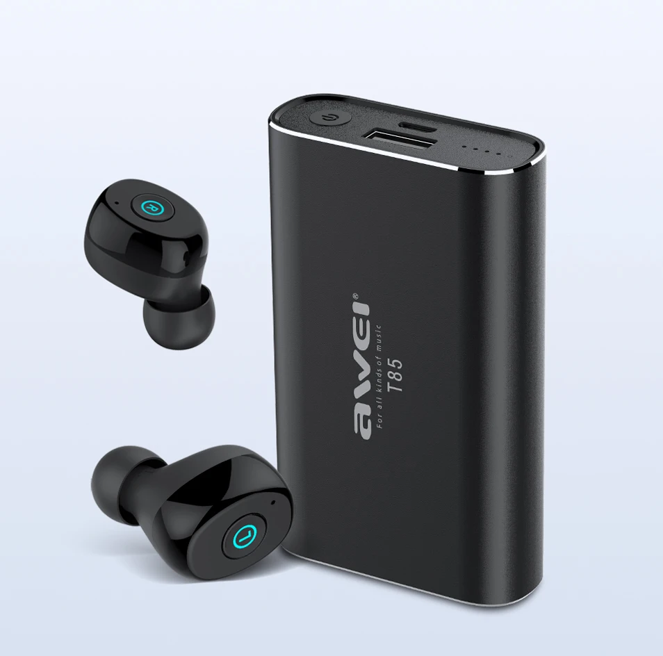 AWEI T85 TWS Wireless Earbuds Bluetooth 5.0 1800mAh Power bank Mini Bluetooth Earphone Headphones With Dual Microphone For Phone