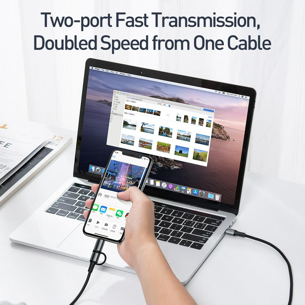 Baseus Gemini 2-in-1 PD Data Cable Type-C TO Type-C60W + iP18W Dual Flash Charging Cable