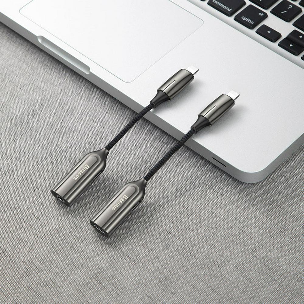 Baseus L56 iP to iP Female +3.5 Female Two-in-one Adapter (Zinc Alloy + Luminous)