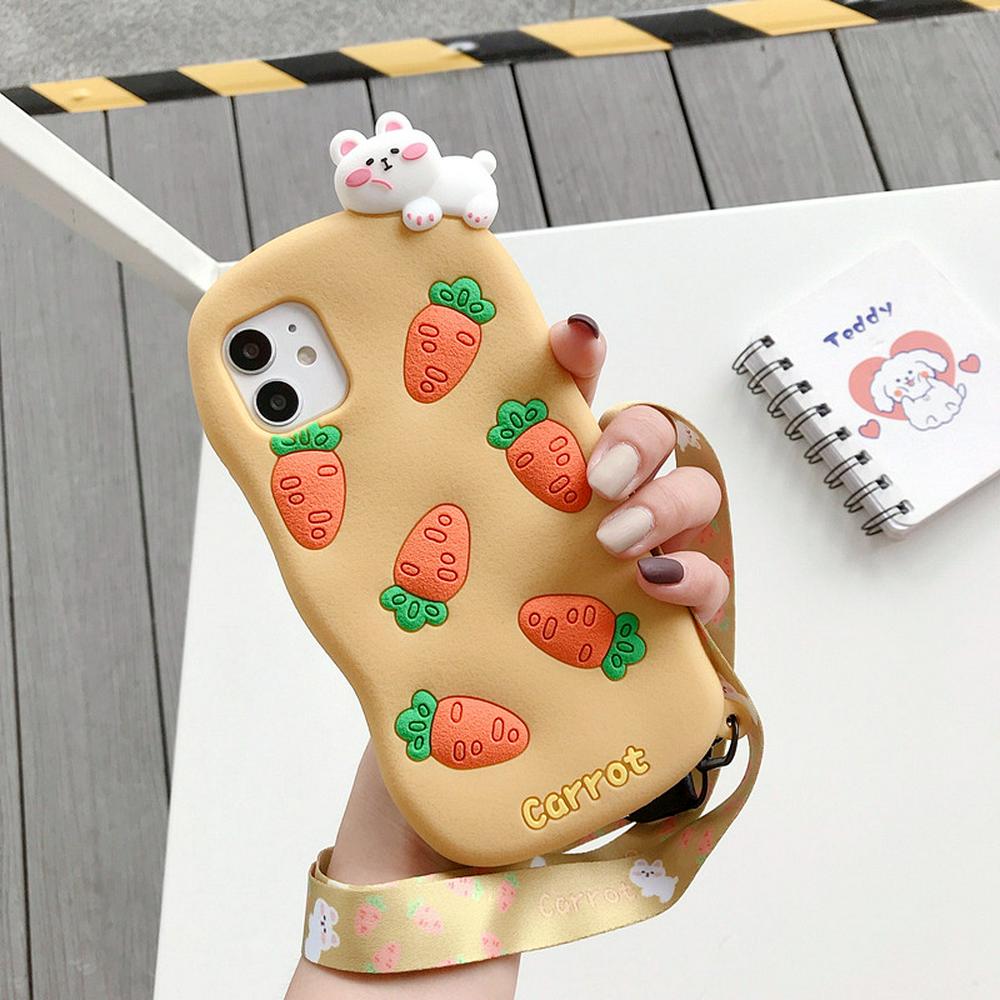 Cartoon Little Carrot Rabbit Pattern Anti-Scratch Shockproof Soft Silicone with Lanyard Back Cover Case for iPhone 11 Pro Max (6.5)