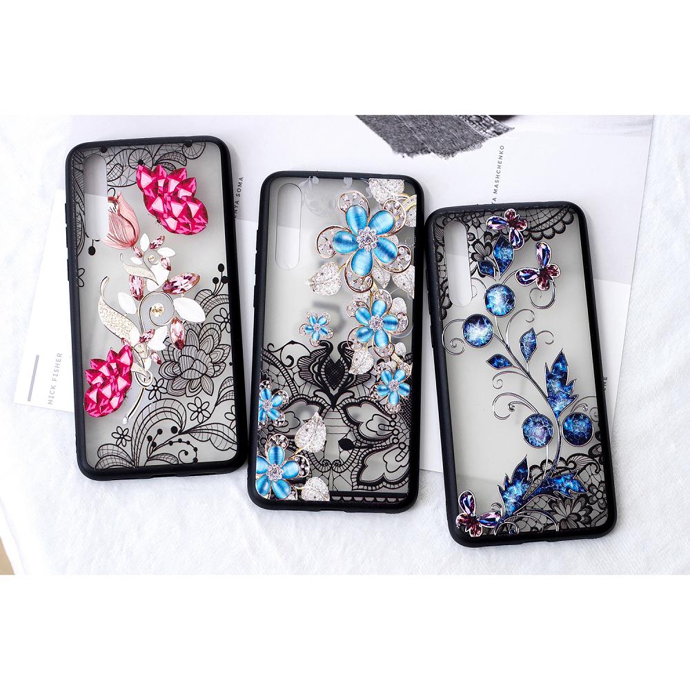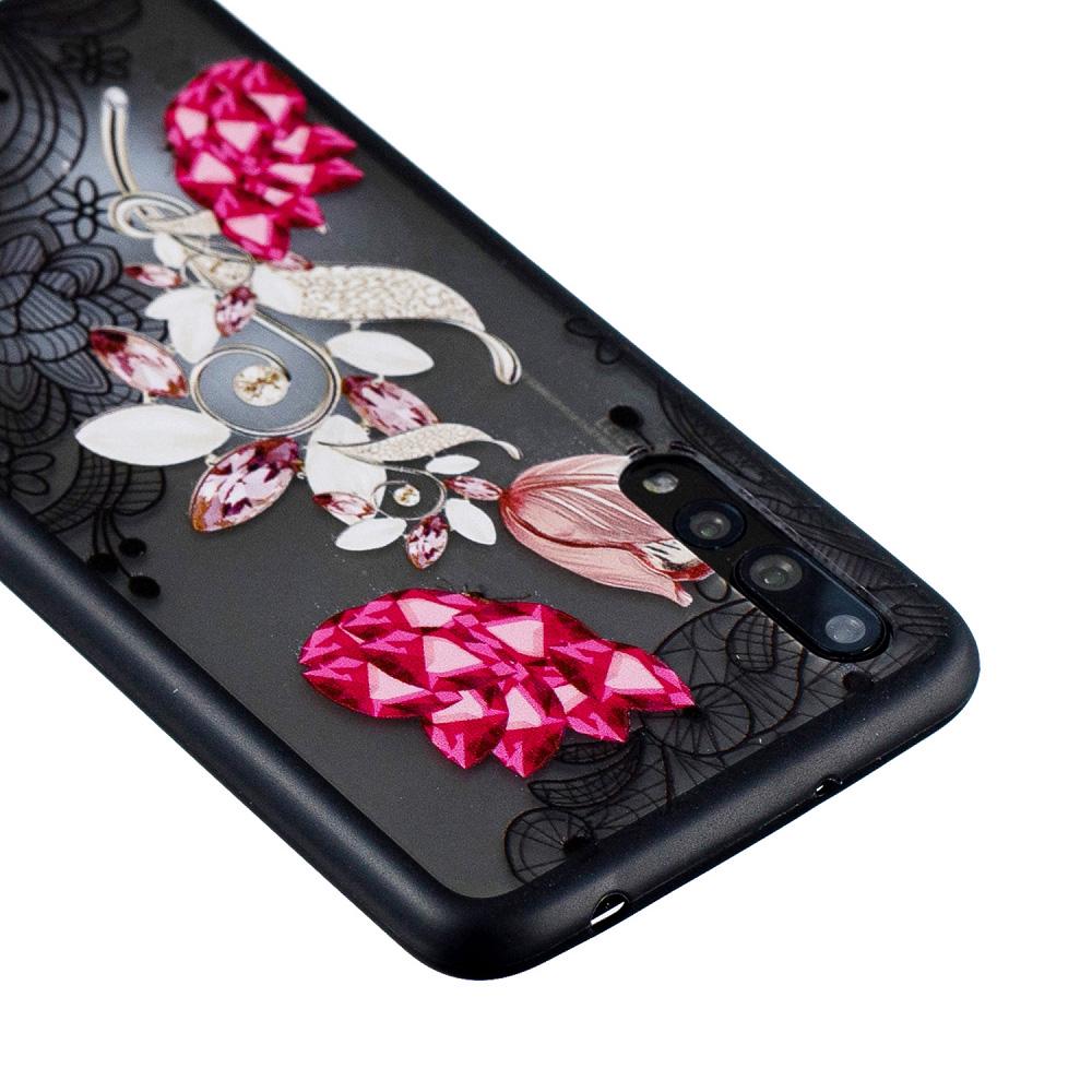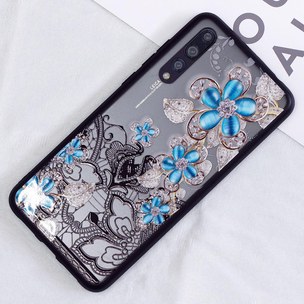 Diamond Studded 3D Colored Painting Lace Pattern TPU Back Cover Case for Huawei P20 Pro