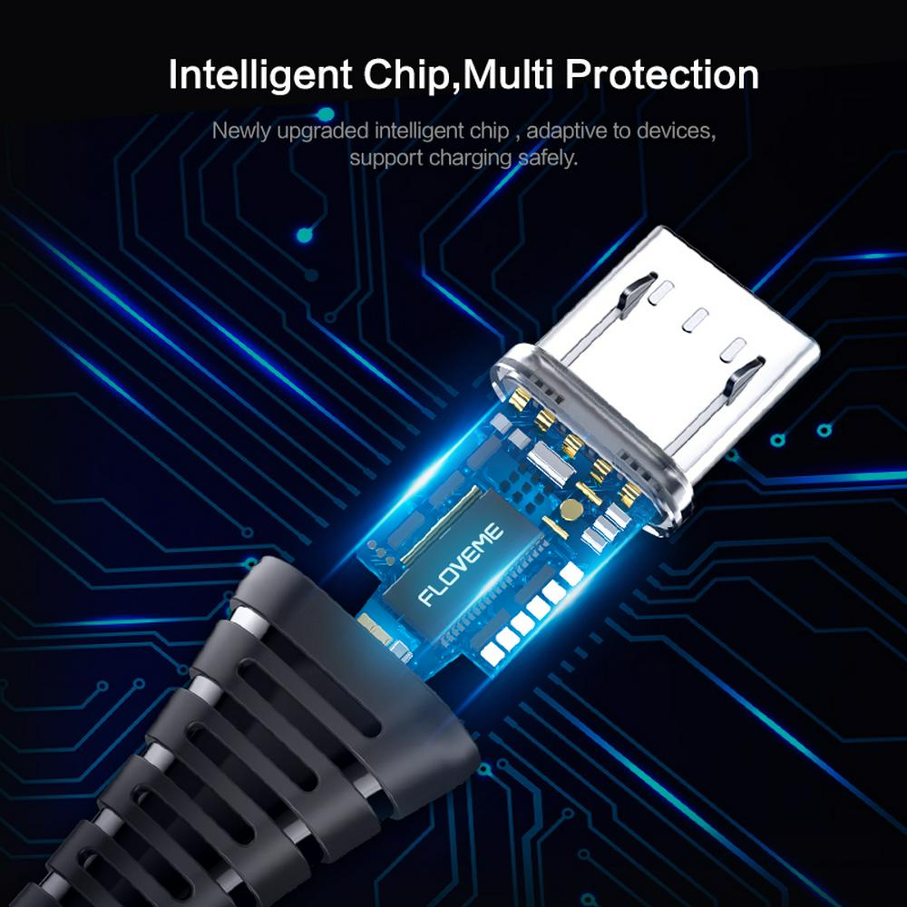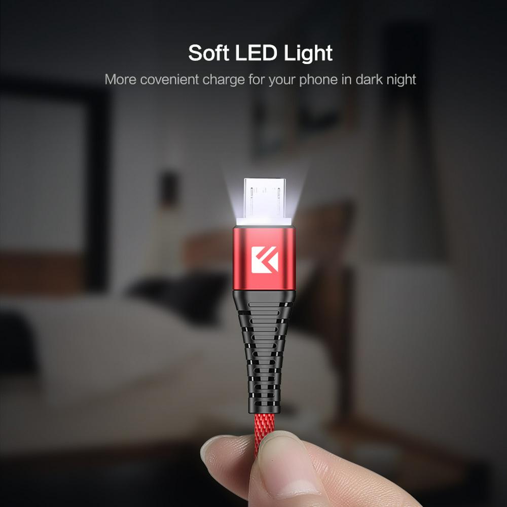 FLOVEME 1m TPE with Soft LED Light USB Fast Charging Micro USB Cable for Devices with Micro USB Interfaces