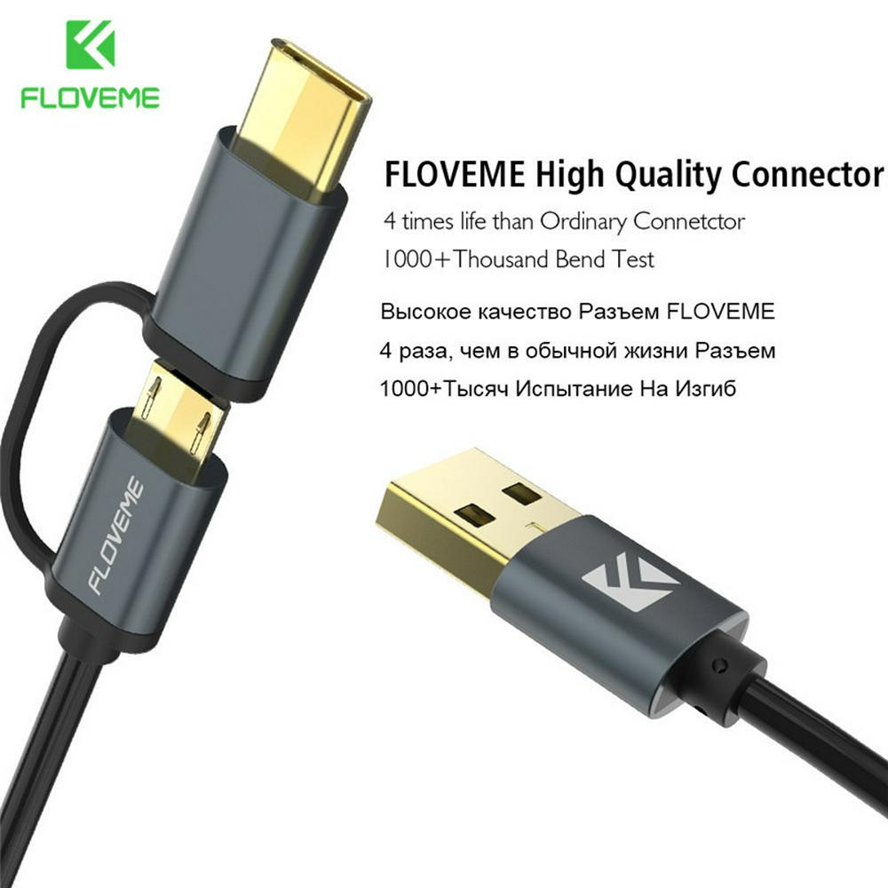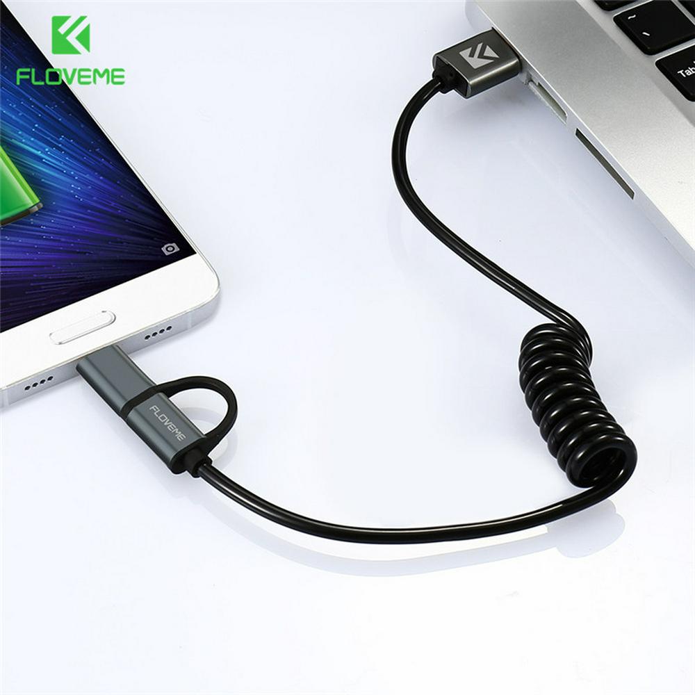 FLOVEME 2.8A QC3.0 Type-C + Micro USB Interface 2 in 1 Retractable Fast Charge Data Sync Charging USB Cable for Android Devices
