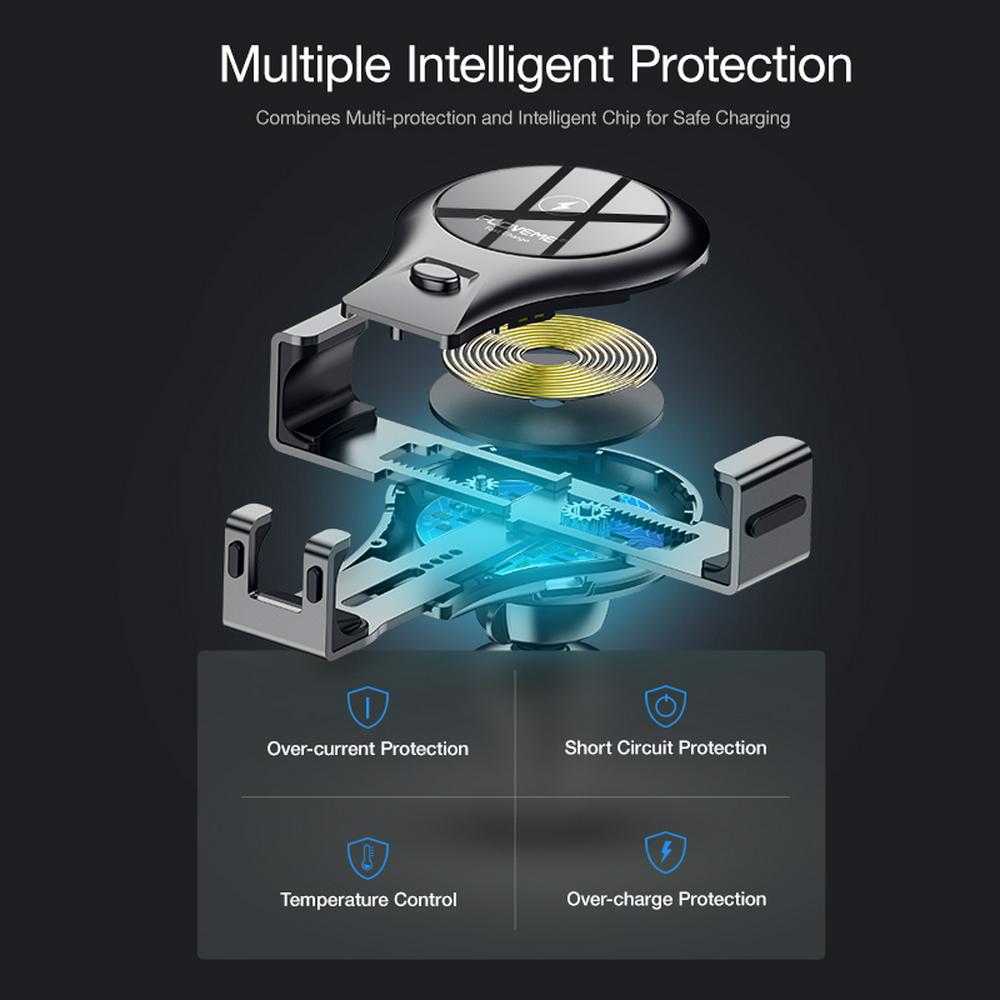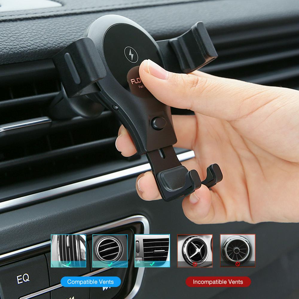 FLOVEME Round Shaped Gravity 10W Qi Fast Wireless Charging Car Phone Holder Charger for Smartphones