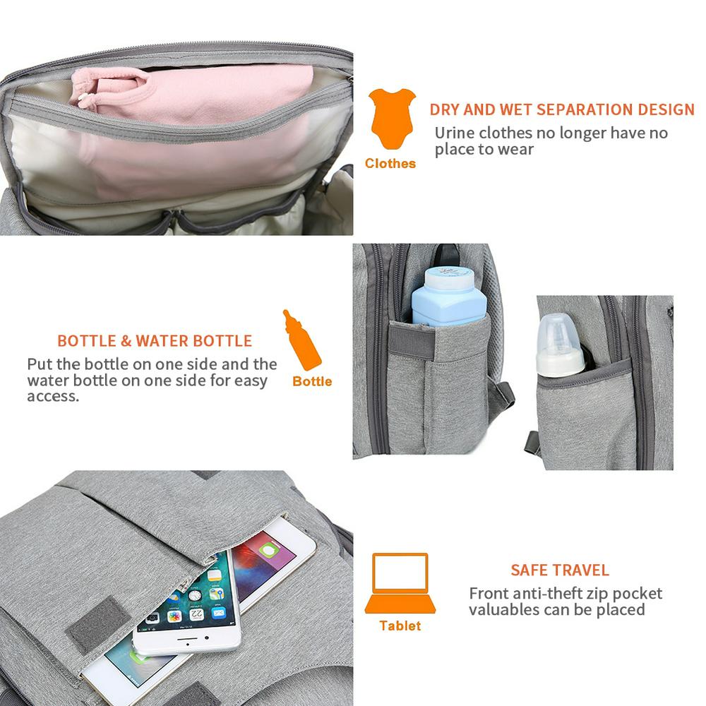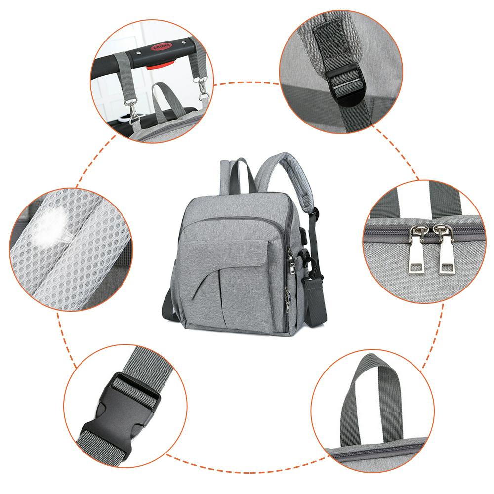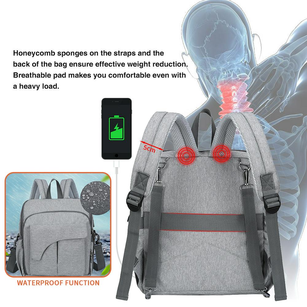 Large Capacity Diaper Bag Backpack Waterproof Stroller Organizer Bag with Exterior USB Port