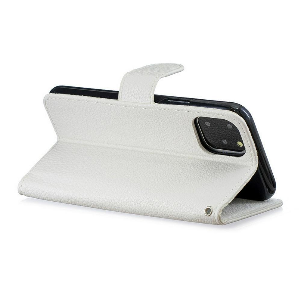 Litchi Pattern Side Flip Shockproof Wrist Strap Style PU Leather + Soft TPU Card Slots with Magnetic Buckle and Stand Wallet Protective Case for iPhone 12 (6.1)