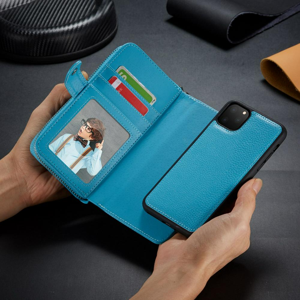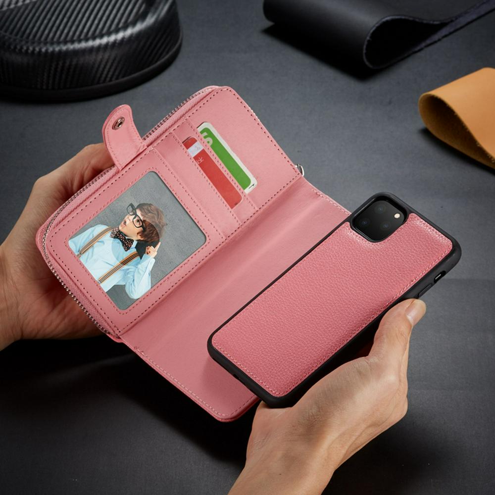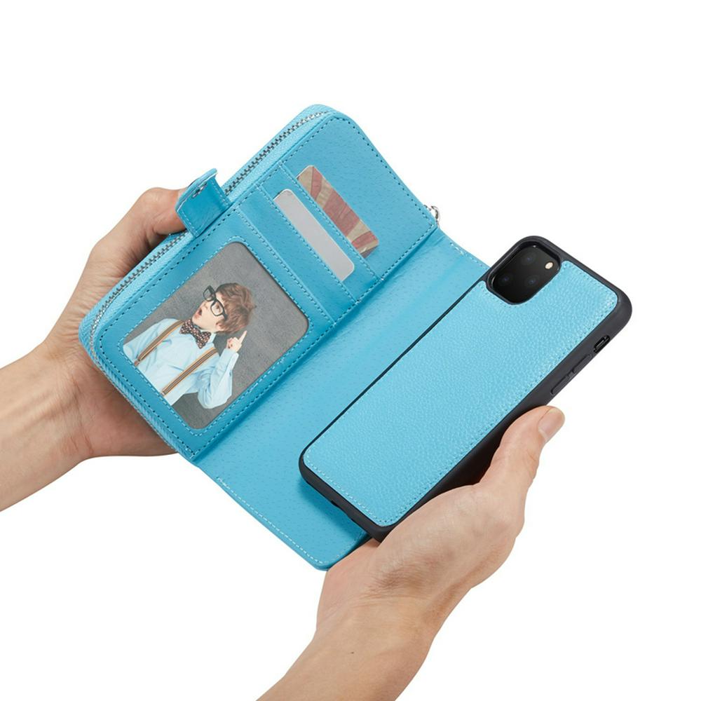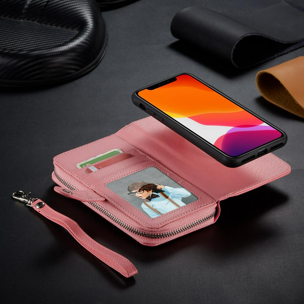 - Wallet two card slots,one picture frame,one wrist strap plus zipper cash pockets design;