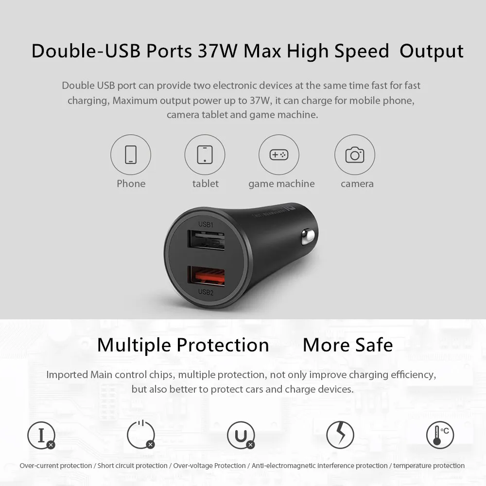 * Ondersteuning Snel Opladen, dual usb-poort uitgang 37 W max, enkele usb-poort output tot 27 W.