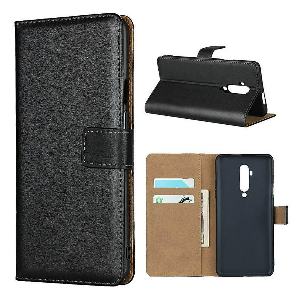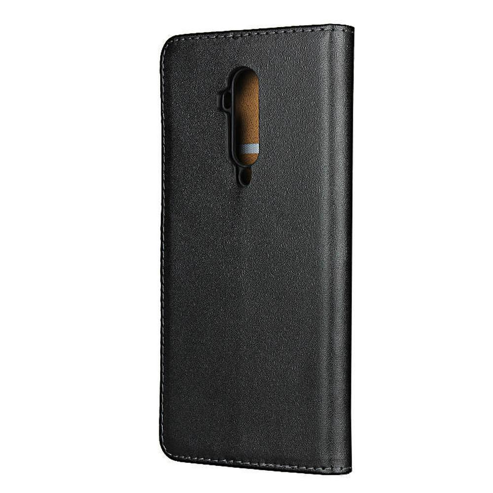 Plain Weave Shock-Absorption Side Flip Genuine Leather + Soft TPU Magnetic Buckle with Card Slots and Stand Wallet Case for OnePlus 7T Pro