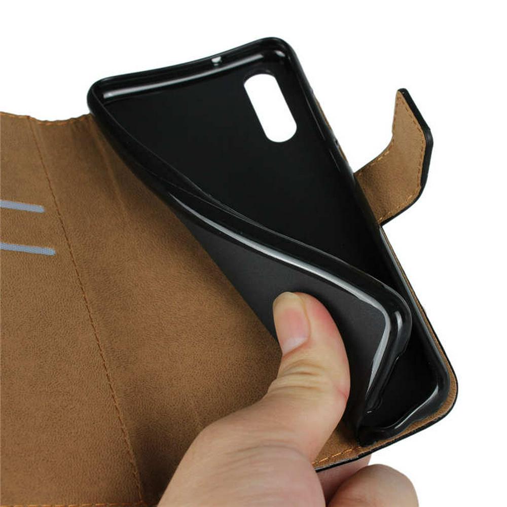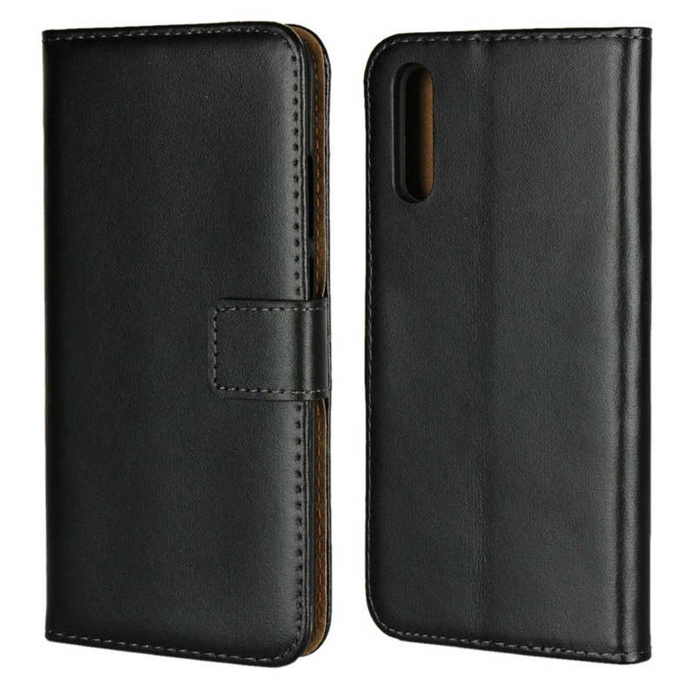 Plain Weave Shockproof Anti-Scratch Side Flip Genuine Leather + Soft TPU Card Slots with Magnetic Buckle and Stand Wallet Protective Case for Huawei P20