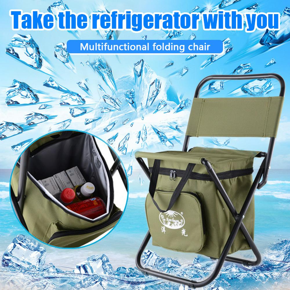 Portable Folding Camping Stool with Insulated Ice Bag for Camping, Hiking