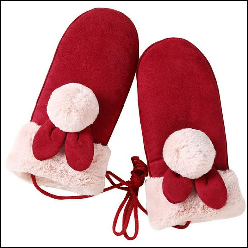 015A Winter Plus Velvet Women Outdoor Warm-Keeping Windproof Bag Fingers Suede Gloves with Finger Rope