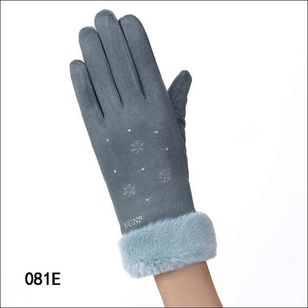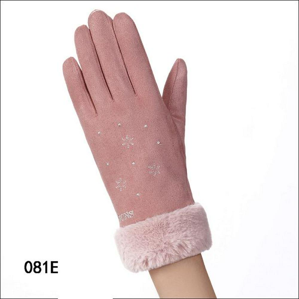 081E Snowflake Pattern Women Winter Windproof Warm-Keeping Plus Velvet Full Fingers Touch Screen Gloves for Riding Shopping Camping Casual Use
