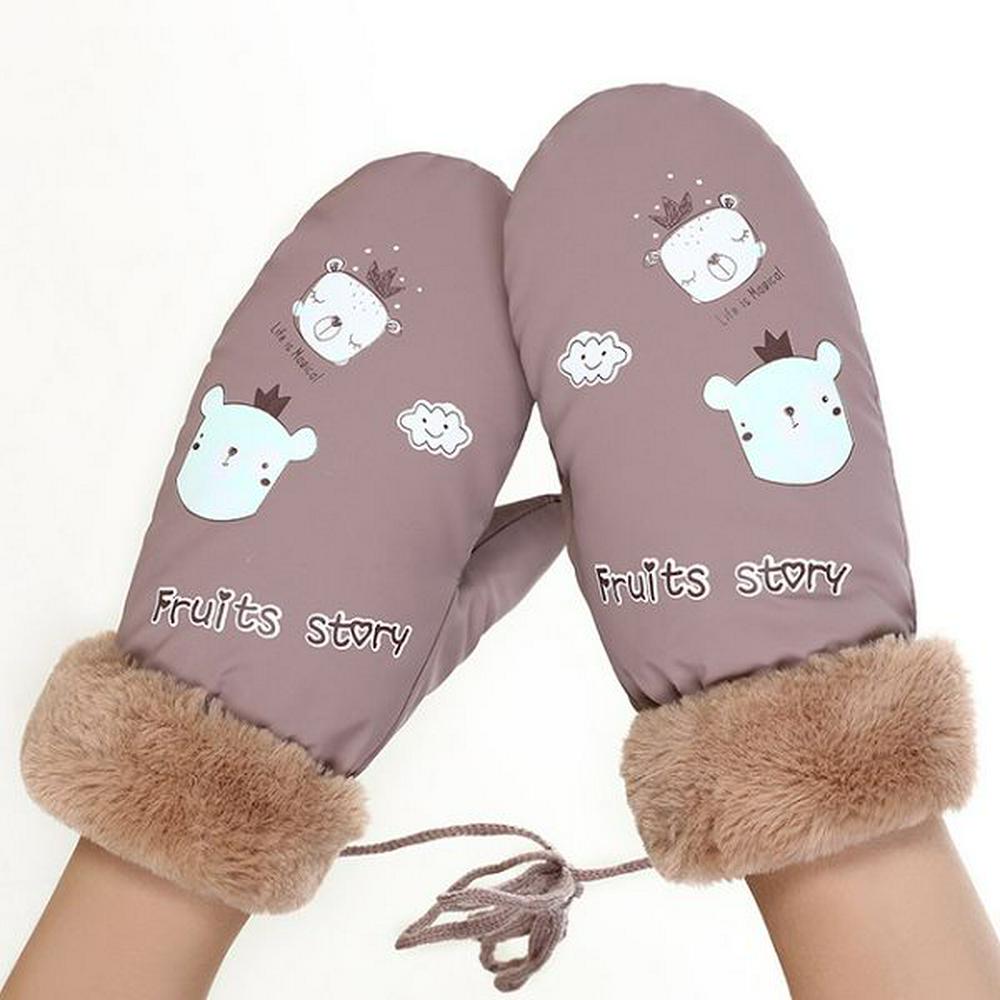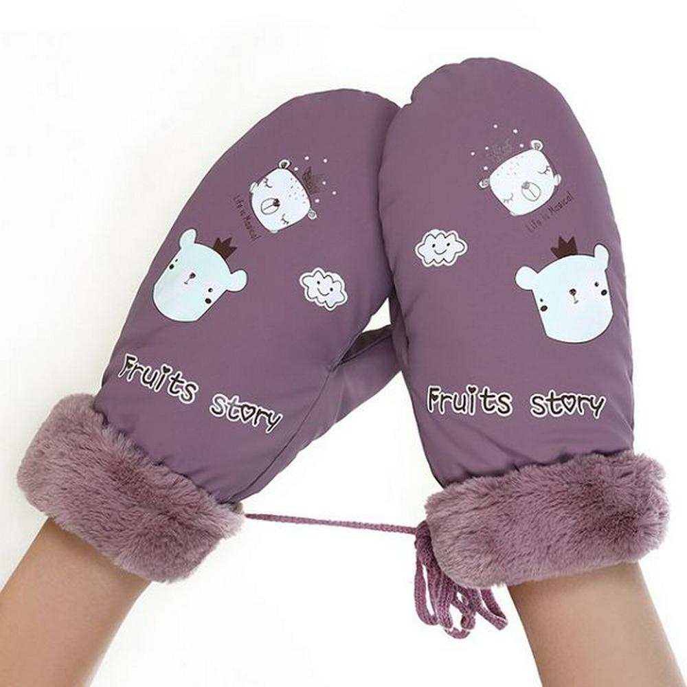 084A Fruits Story Letter Cartoon Pattern Thickening Winter Windproof Plus Velvet Warm Bag Fingers Gloves with Finger Rope