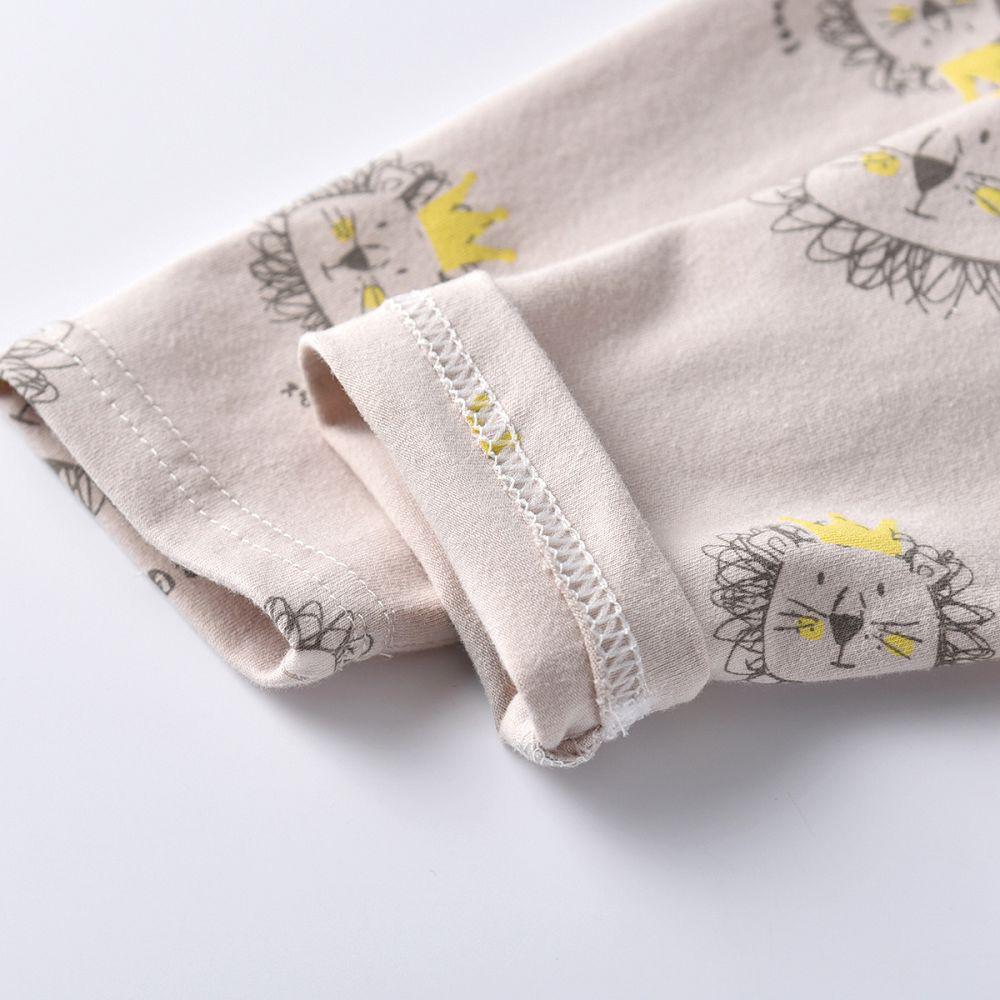 100-130cm Occident Simple Comfortable Print Lion Head Pattern Stuffed Sanding Cotton Long-Sleeved Top + Pants Pajamas Sets Home Clothes for Children