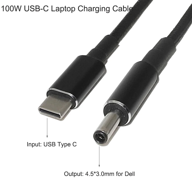 100W USB Type C Fast Charging Cable for Dell Inspiron 11 13 14 15 3000-7000 Series Vostro 5501 5502 5401 5402 USB-C to 4.5 X 3.0 Plug Laptop Adapter