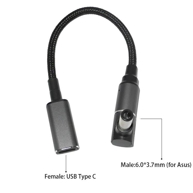 100W USB Type C PD Power Adapter Converter to 6.0x3.7mm with Pin Jack Magnetic Fast Charging Cable Wire for Asus TUF Gaming Laptop