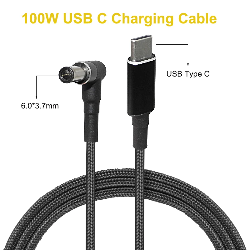 100W USB Type C to 6.0x3.7mm Male Plug Converter Dual E-Mark Chips USB C PD Charging Cable Cord for Asus FX-PRO Laptop Pc