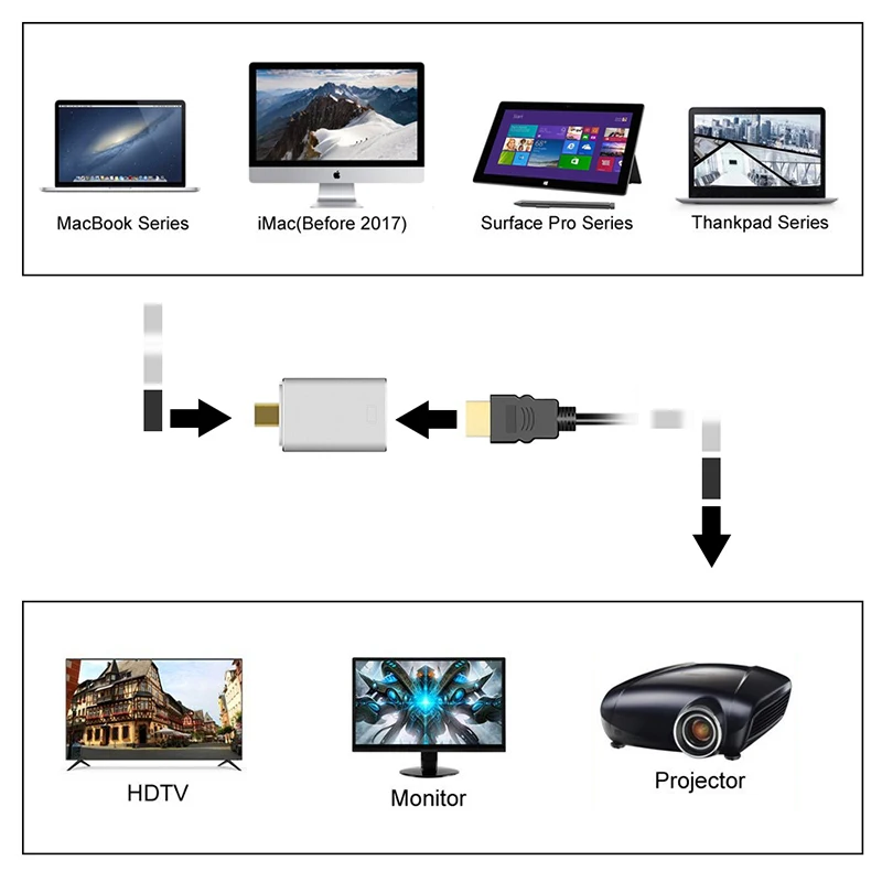 Easy to use: The Mini Displayport to HDMI adapter is designed to connect a Mini DP / Thunderbolt port compatible PC or graphics card to an HDTV, monitor or projector with HDMI; A separate HDMI cable is required (sold separately).