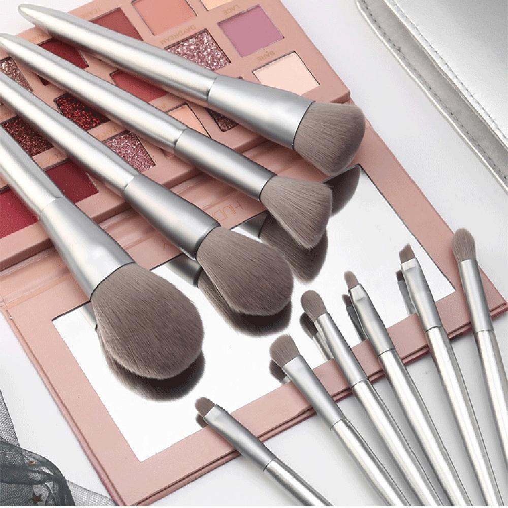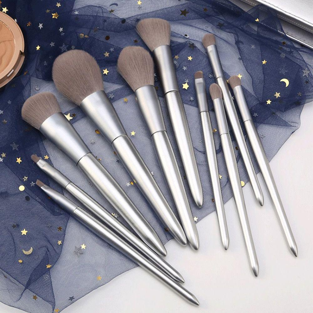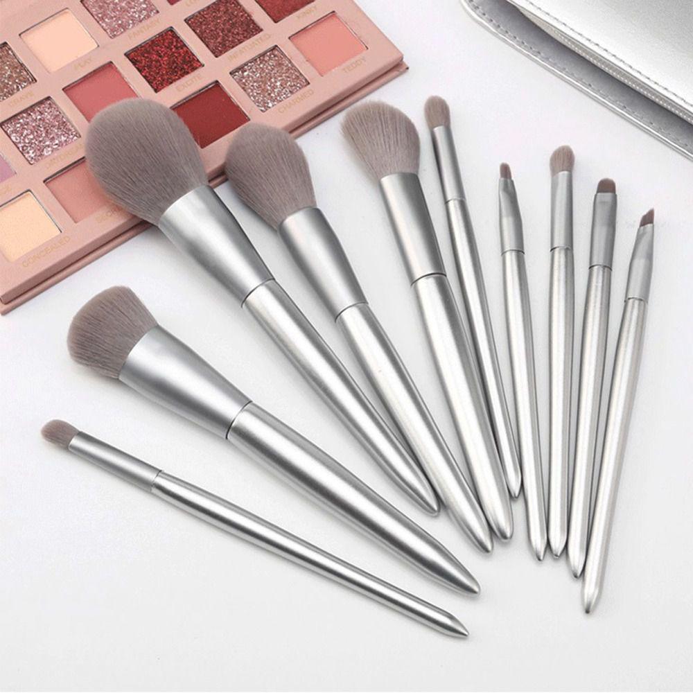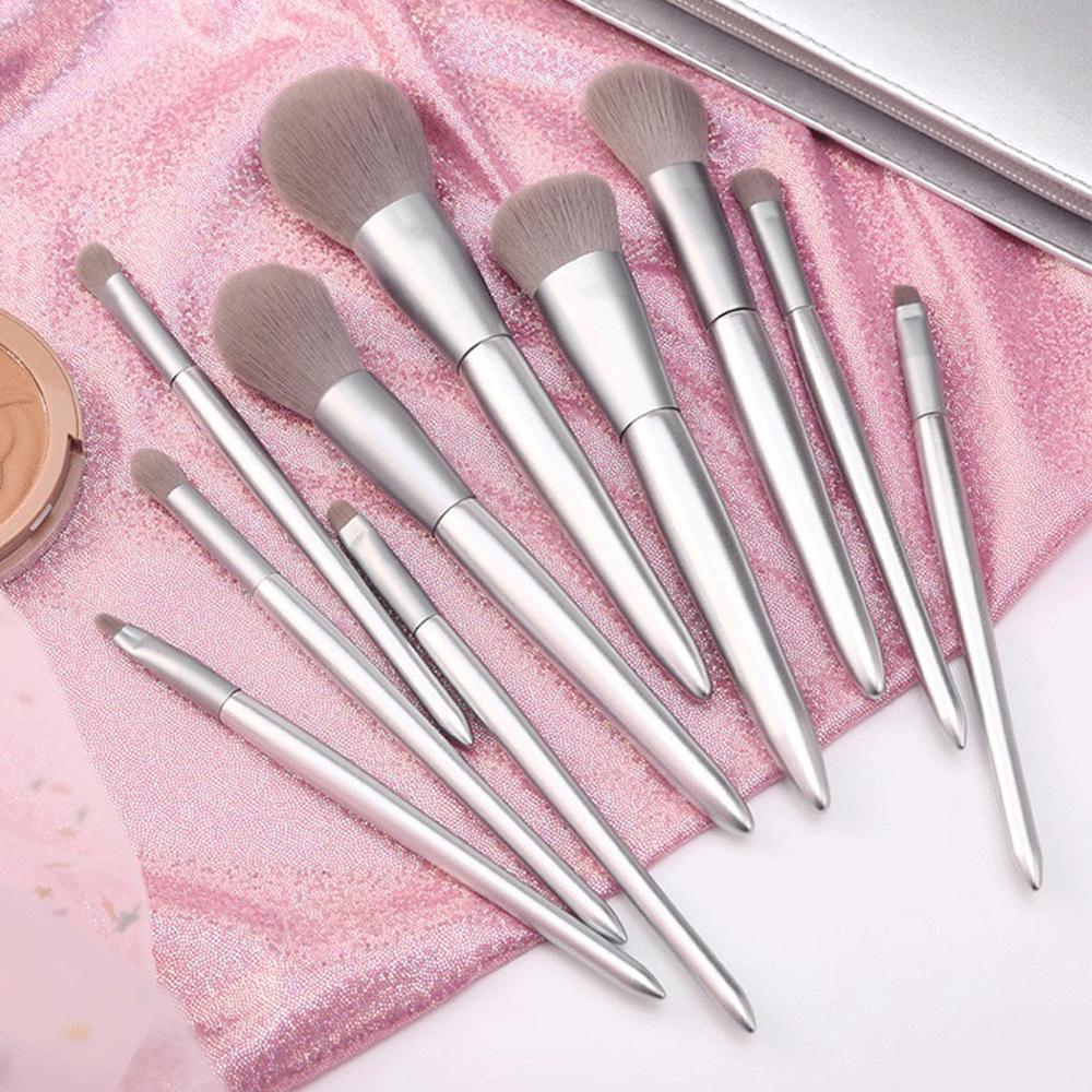 10pcs Multi-function Elegant Silver Color Makeup Brushes Set Soft Cosmetic Beauty Tools