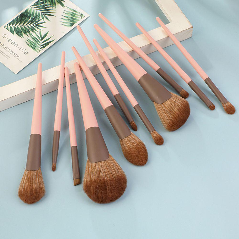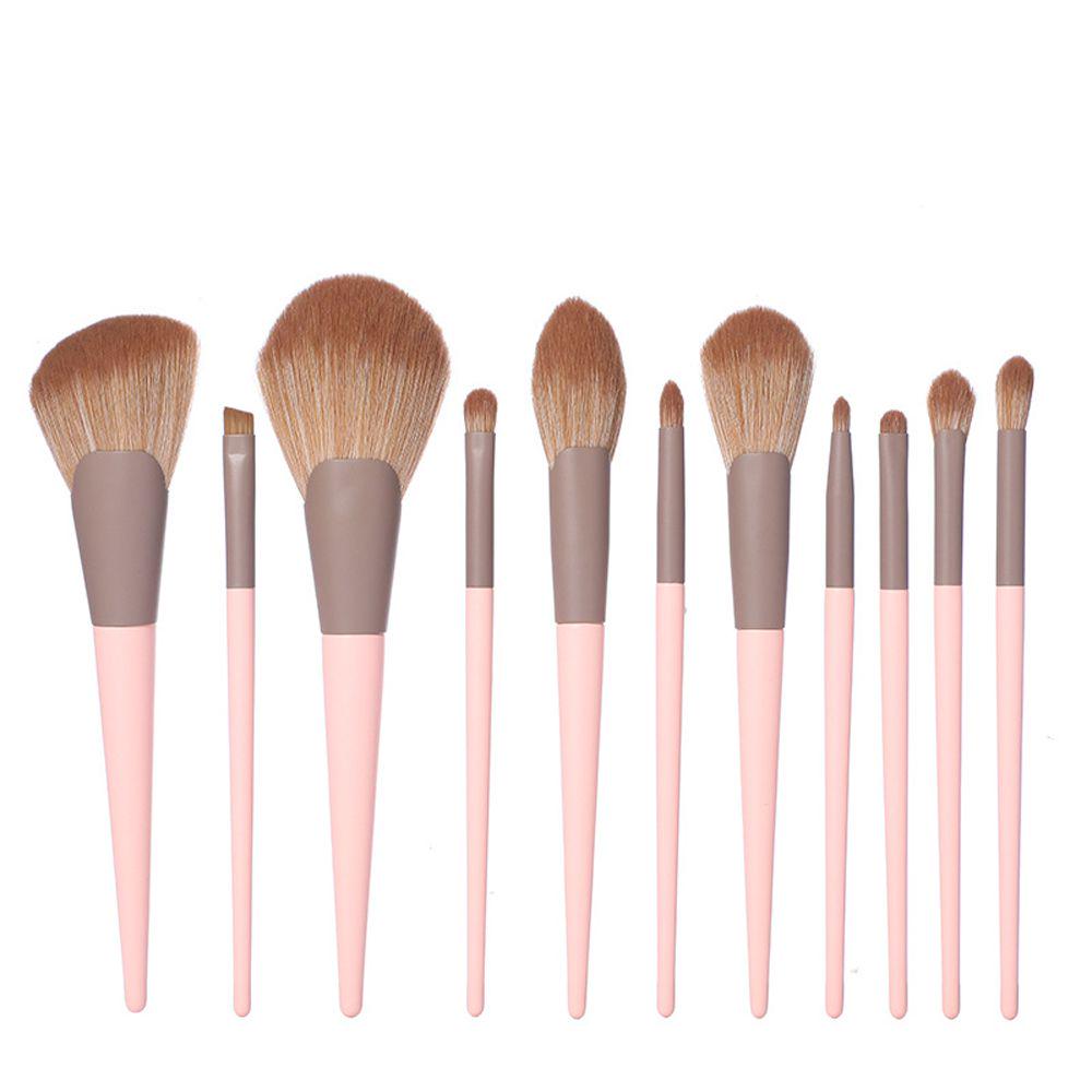 11pcs Pink Small Pudding Wooden Handle Makeup Brush Set Multi-function Beauty Tools with Pack