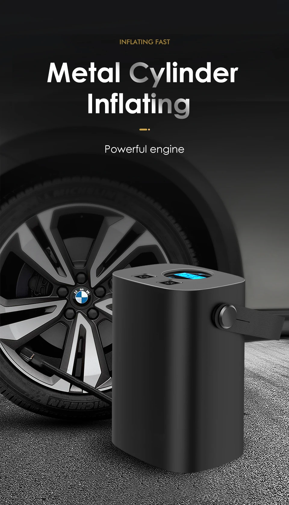 12V Car Wireless Electric Charging Mini Handheld Portable Tire Pump Digital Display Cylinder Inflating for Car Motorcycles