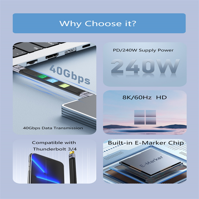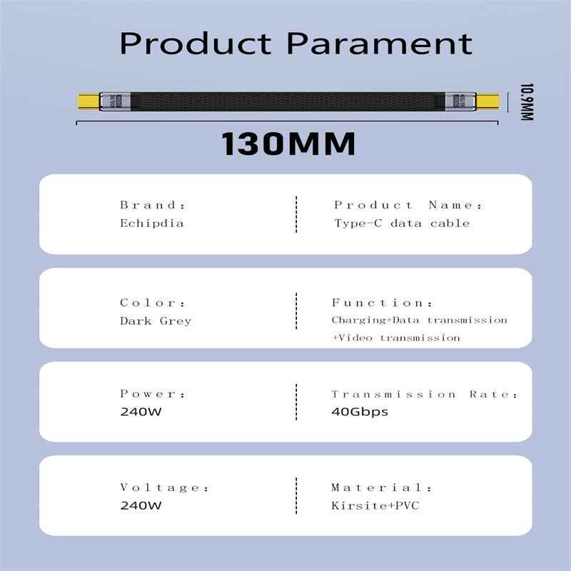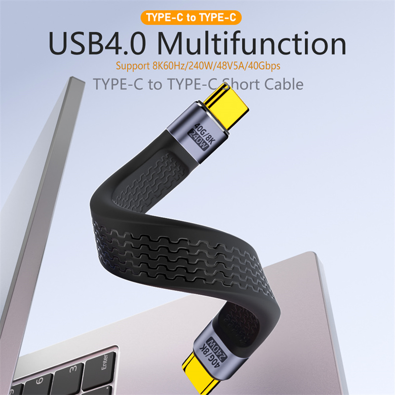 13cm 240W Type-C Male to Male USB4 40Gbps 100W 8K Flat Slim FPC Data Cable for Laptop Phone
