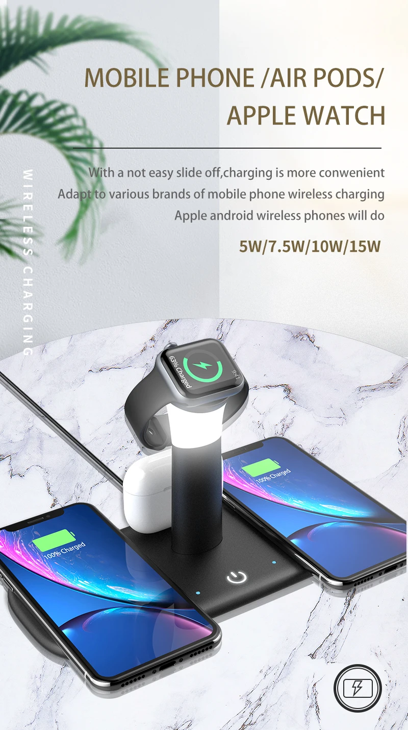 Charging Power: Phone 15W(Compatible 5W 7.5W 10W), Watch 2W. Earphone 3W.