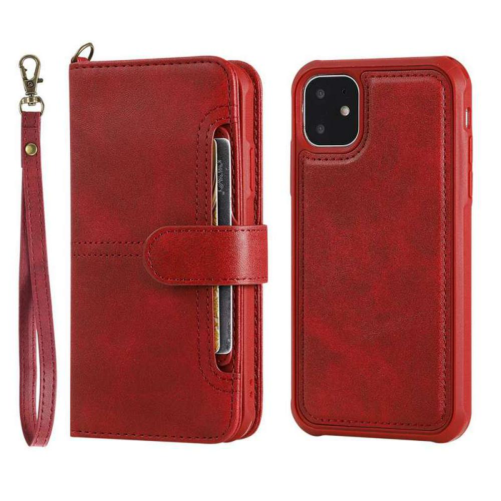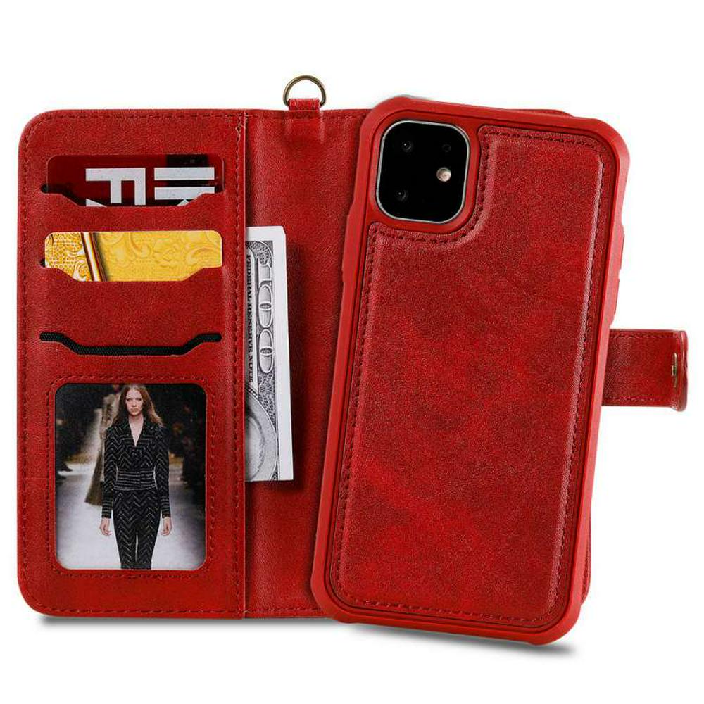 2 in 1 Leather Wallet Case for iPhone 11, Magnetic Detachable Phone Cover with Hidden Stand