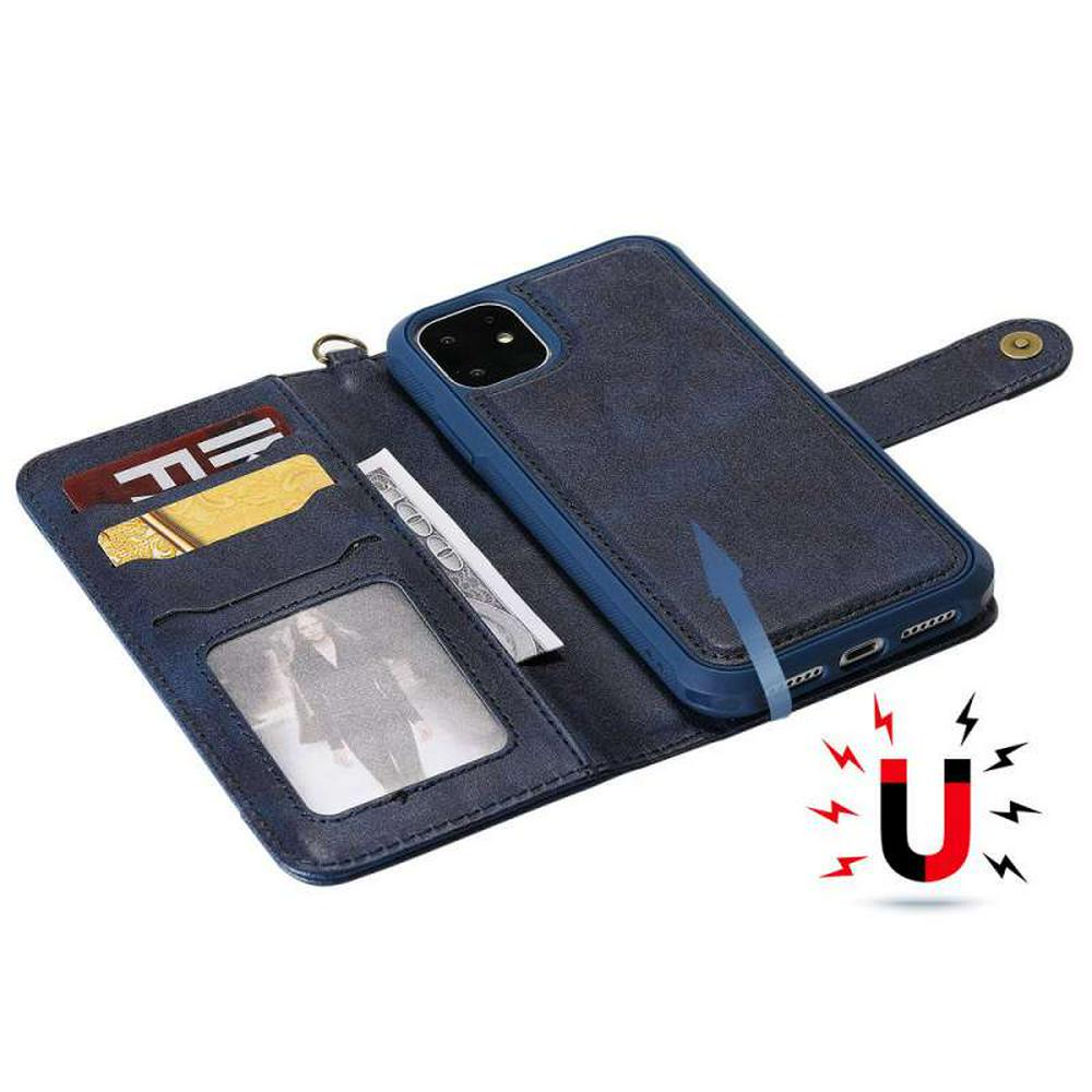 2 in 1 Leather Wallet Case for iPhone 11, Magnetic Detachable Phone Cover with Hidden Stand