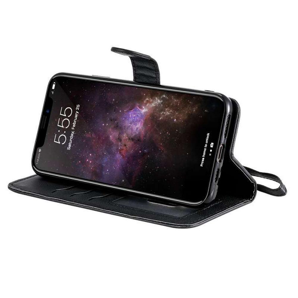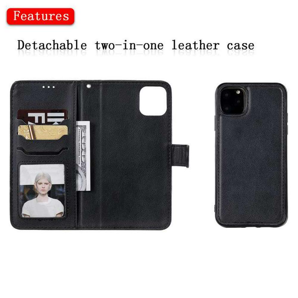 2 in 1 Leather Wallet Case for iPhone 11 Pro Max, Plain Brightly Colored Phone Cover with Lanyard