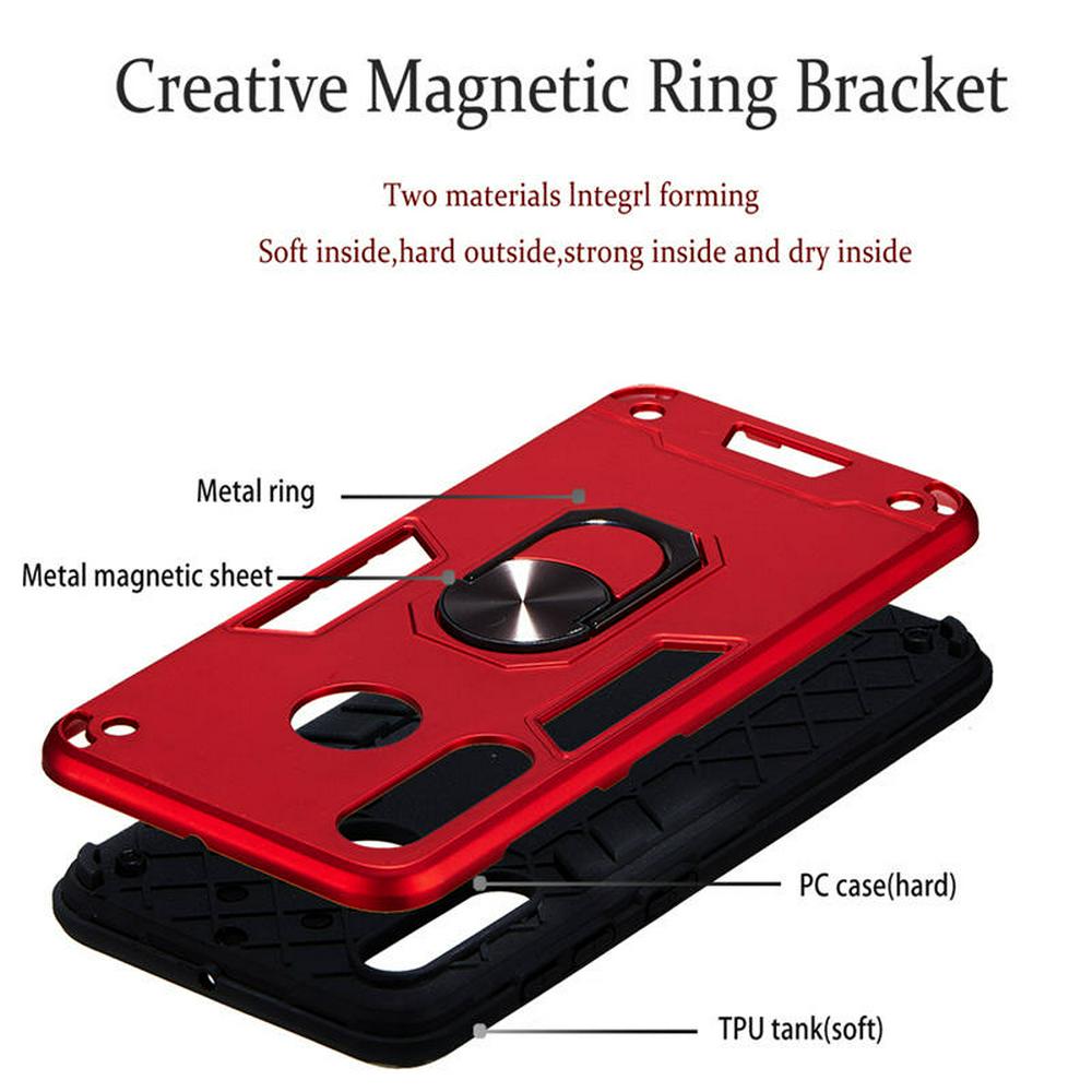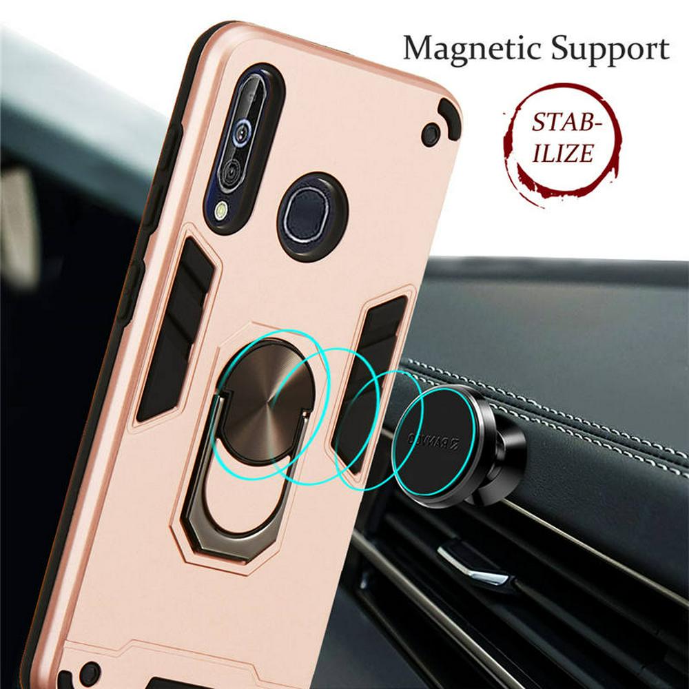 2 in 1 Shockproof Anti-Fingerprint Hard PC + Soft TPU with Metal Magnetic Ring Bracket Back Cover Case for Samsung Galaxy A60