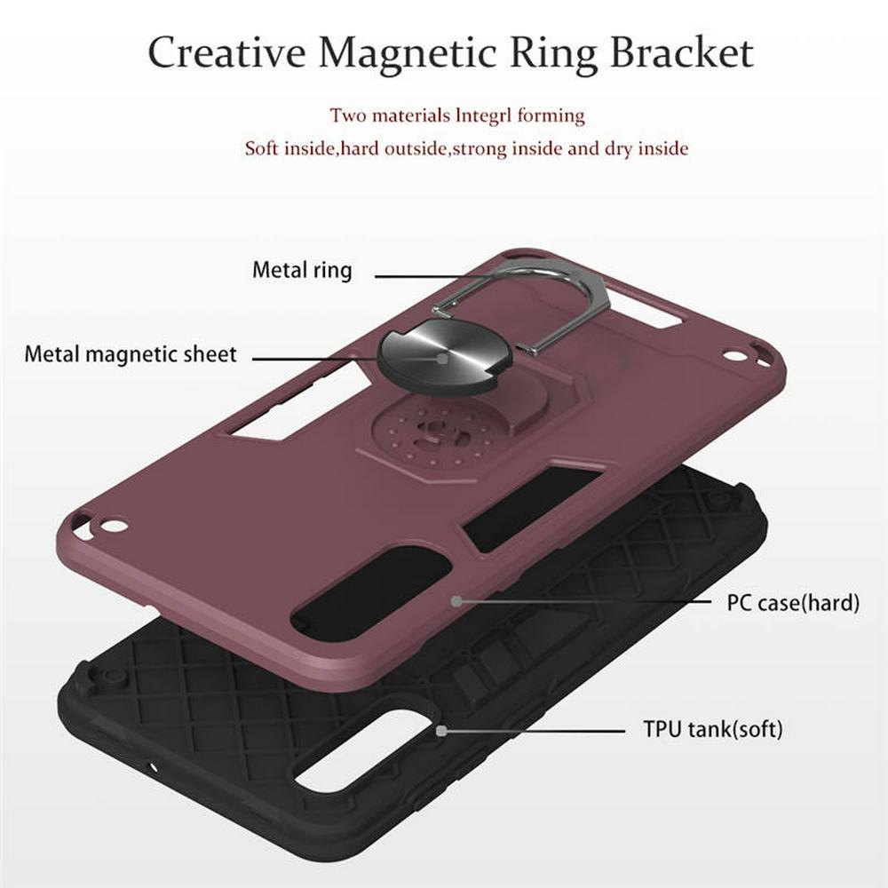 2 in 1 Shockproof Anti-Fingerprint Hard PC + Soft TPU with Ring Kickstand Back Cover Case for Samsung Galaxy A50 / A30s / A50s