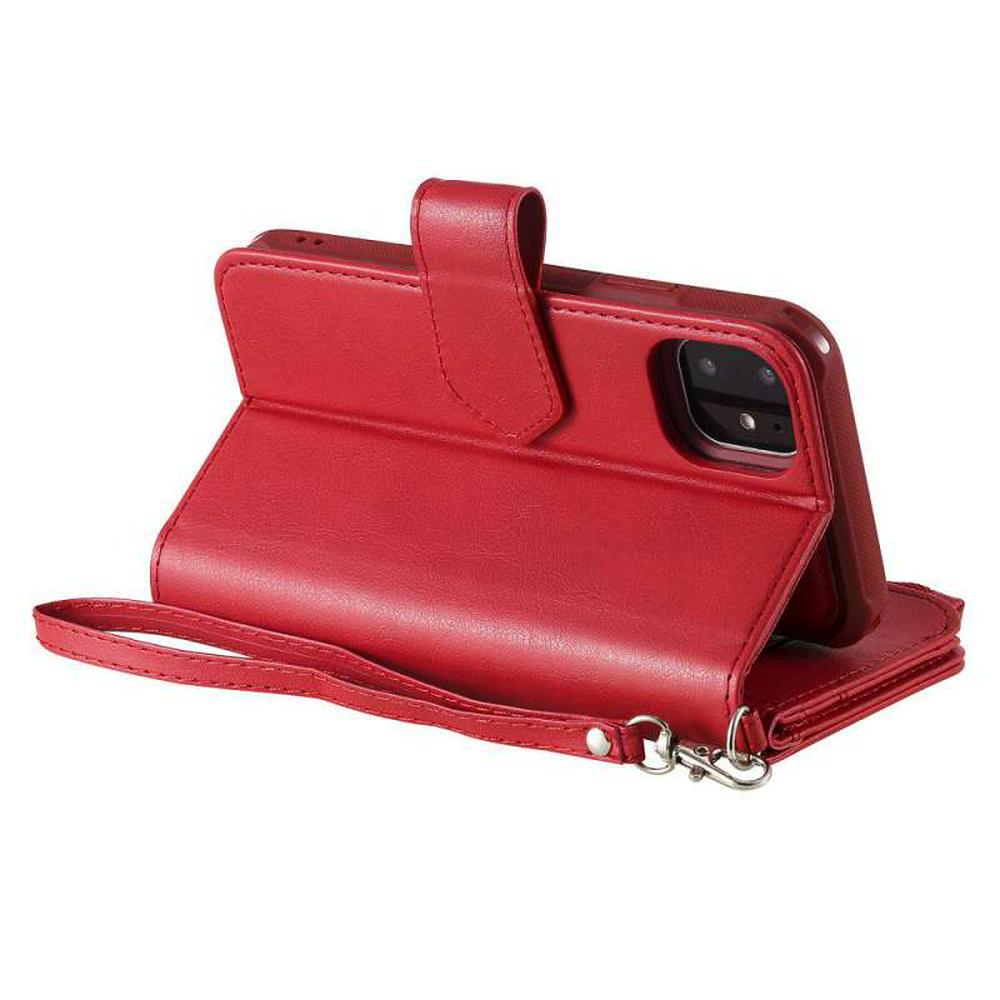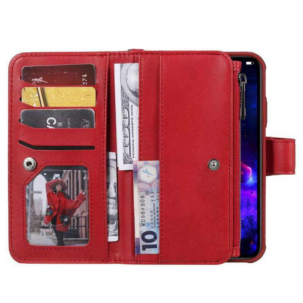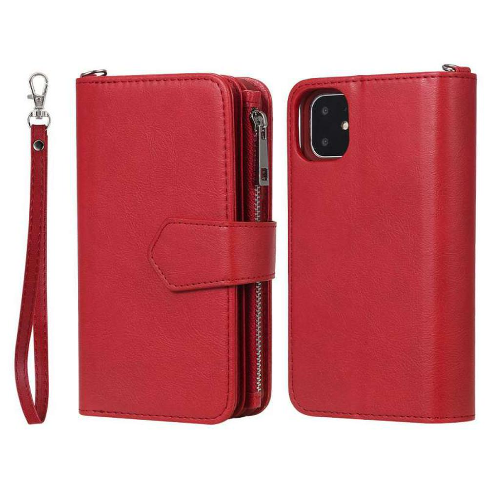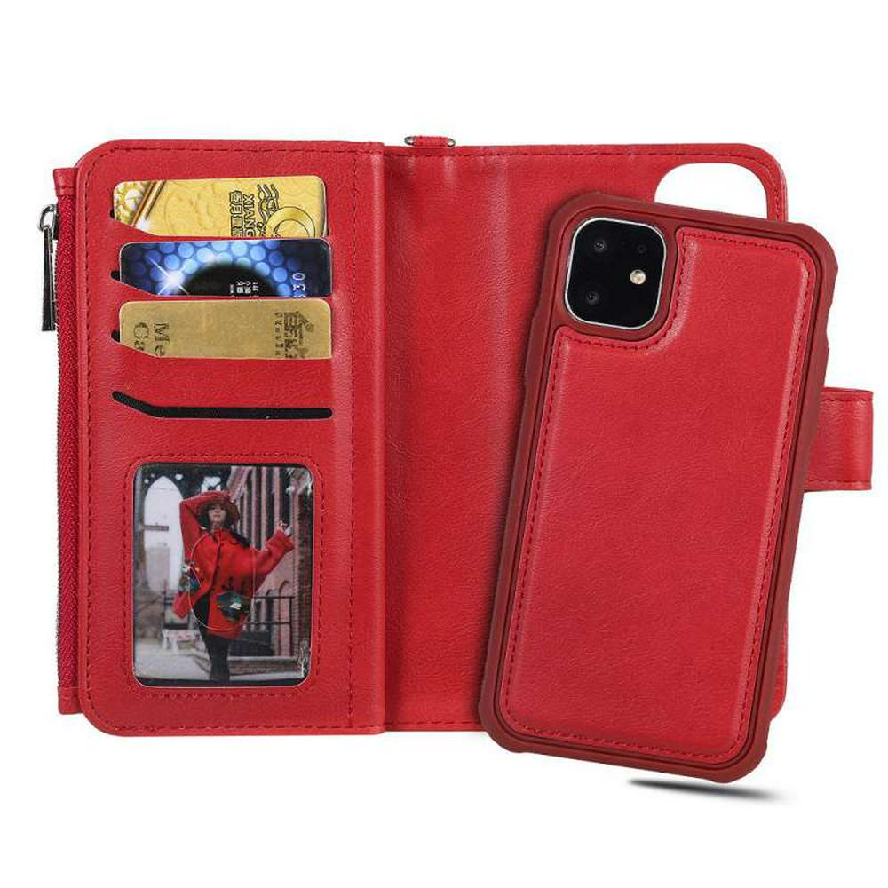 2 in 1 Zippered Leather Wallet Case for iPhone 11, Detachable Phone Cover with Hidden Stand