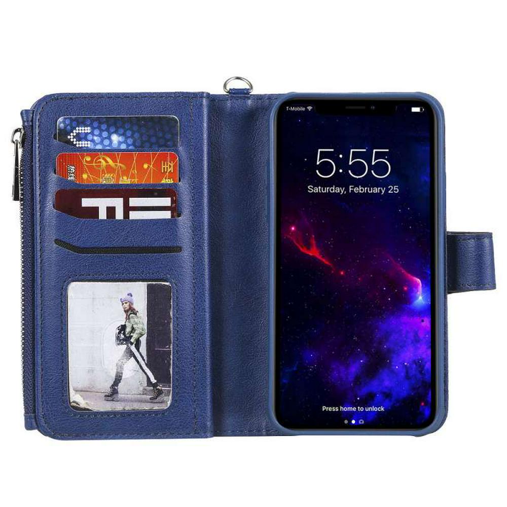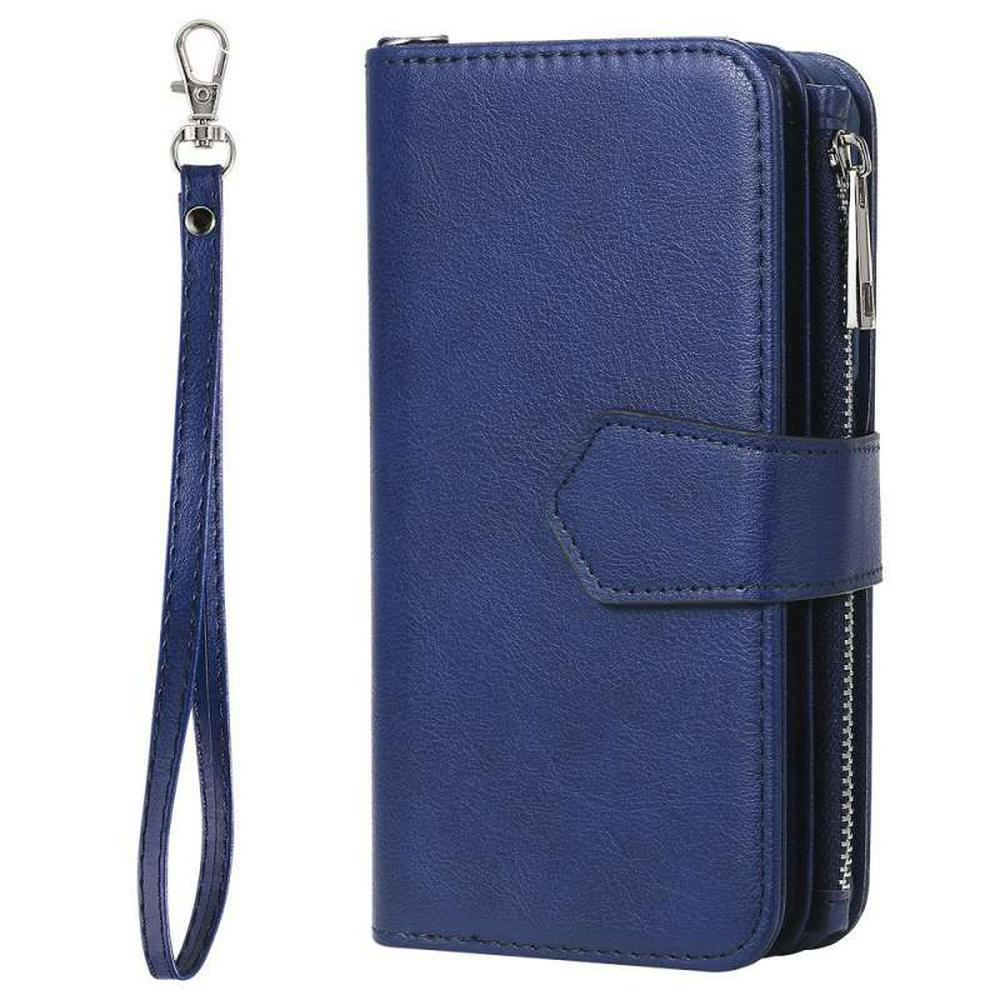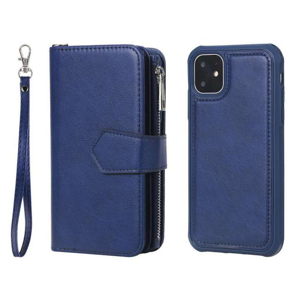 2 in 1 Zippered Leather Wallet Case for iPhone 11, Detachable Phone Cover with Hidden Stand