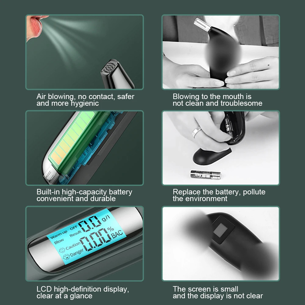 1. Non-contact alcohol tester needs no disposable mouthpiece.