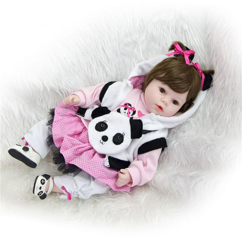 20inch/50cm Lifelike Baby Doll in Panda Outfits Realistic Toddler Doll with Short Hair