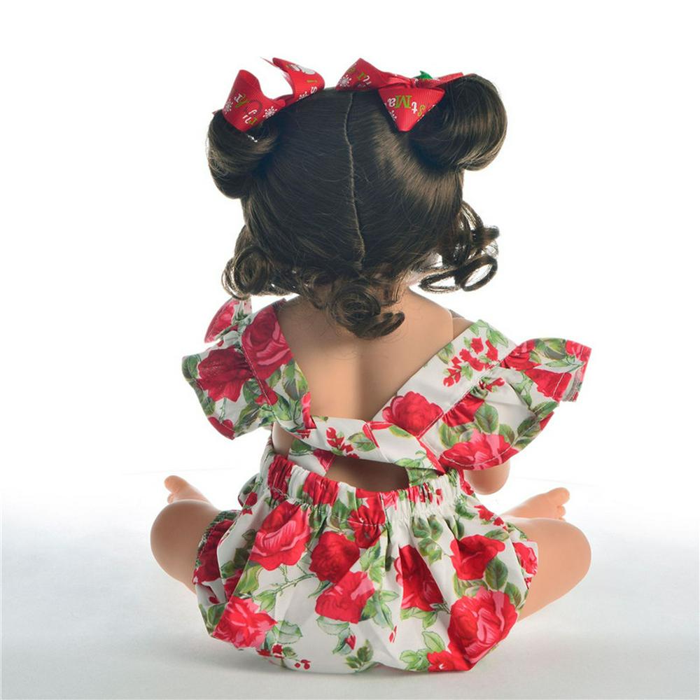 22inch/55cm Lifelike Baby Doll in Floral Dress True to Life Toddler Doll with Ribbon Tie