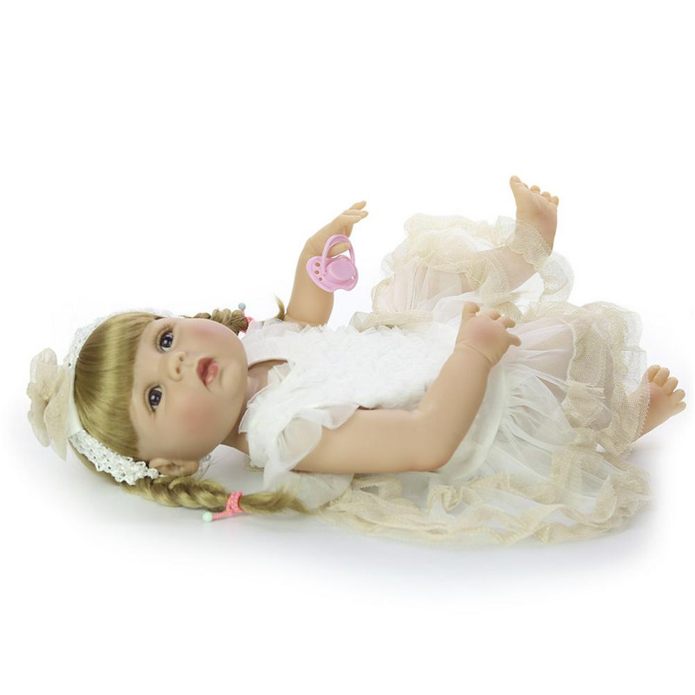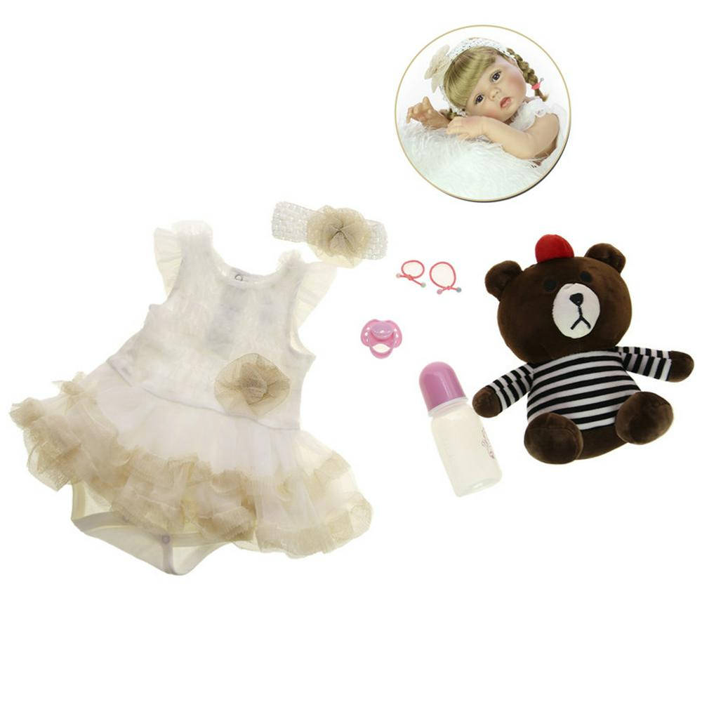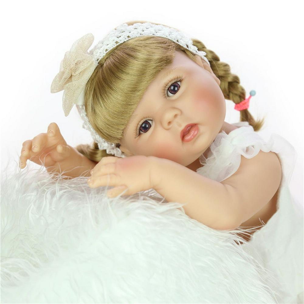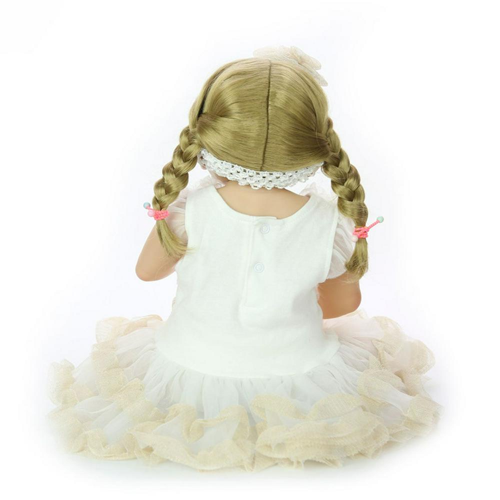 23inch/57cm Lifelike Baby Doll in Tutu Dress Realistic Toddler Doll with Two Braids
